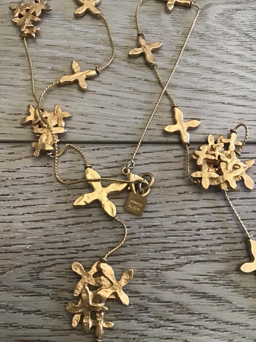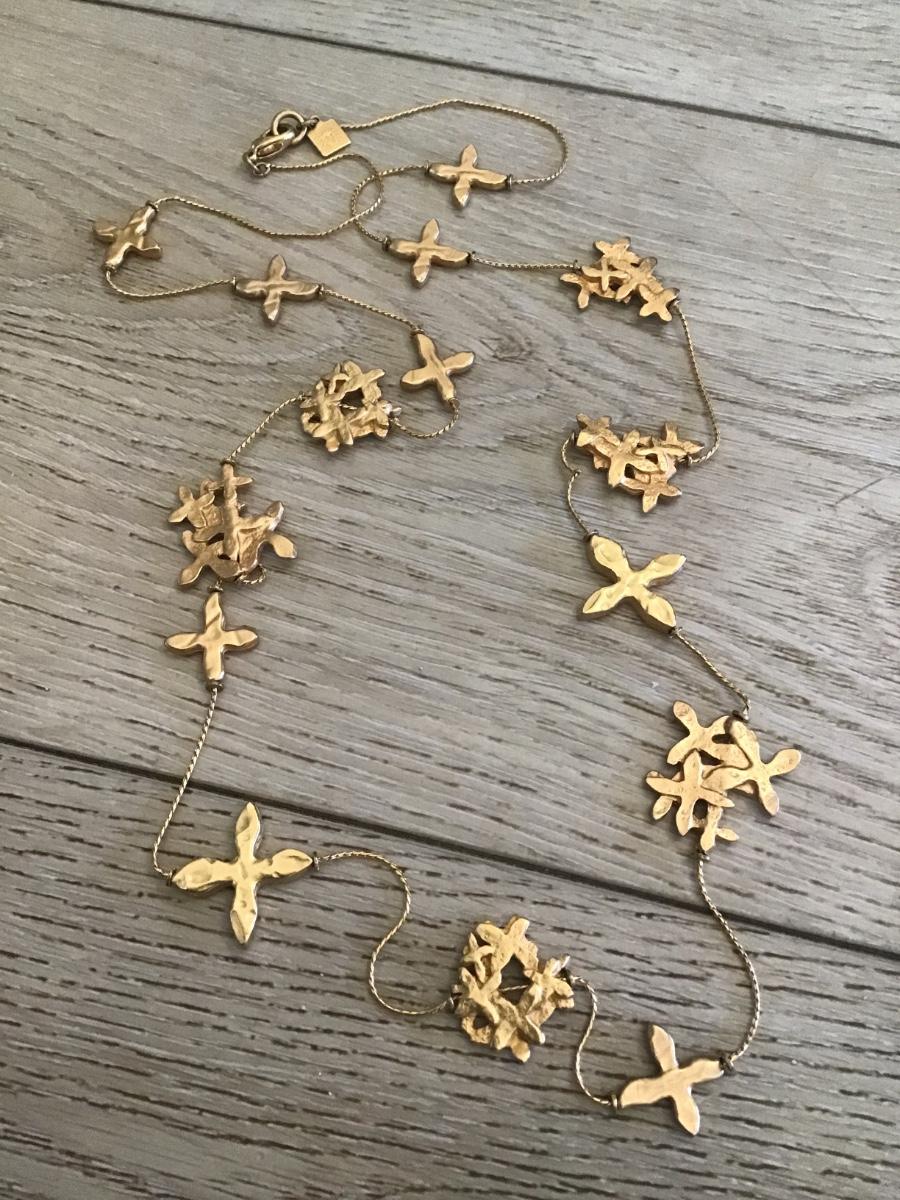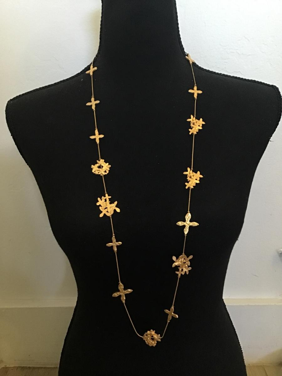 Rare modernist, Annie Klein signed crosses, long chain necklace