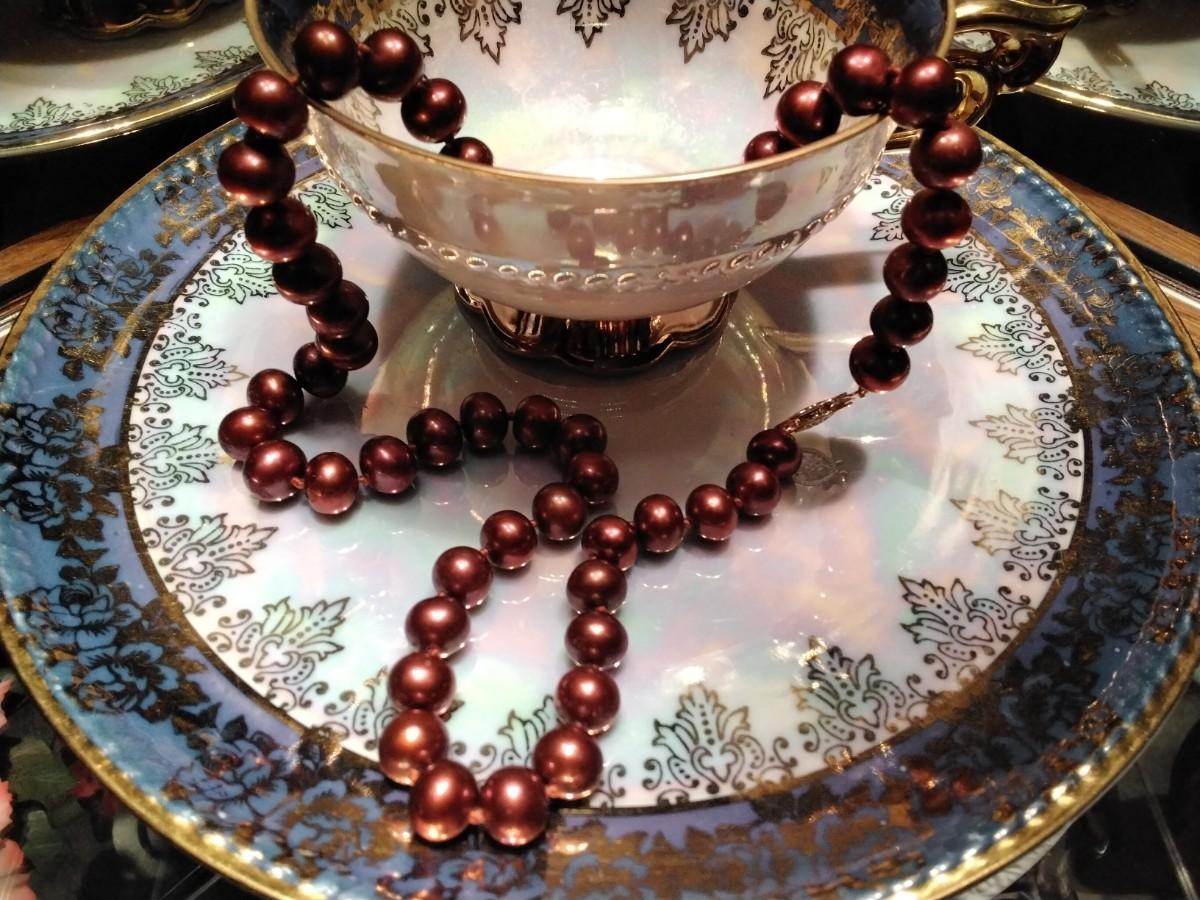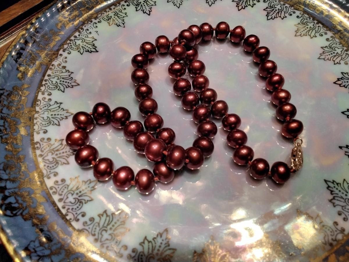 Rare (not dyed, nor shell) south seas natural cranberry red professionally hand-knotted between each luscious pearl. These beauties are 18" 8.5mm with a 14k clasp.