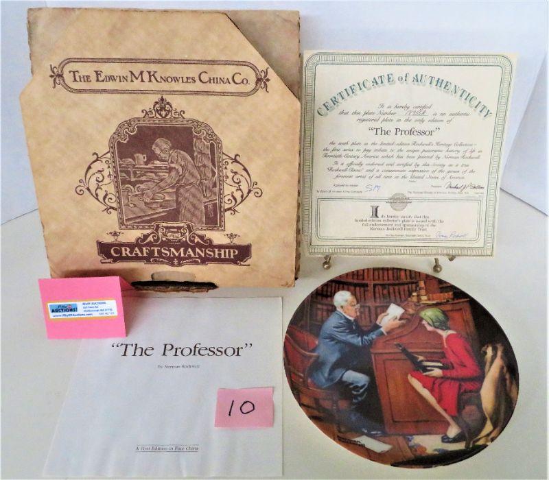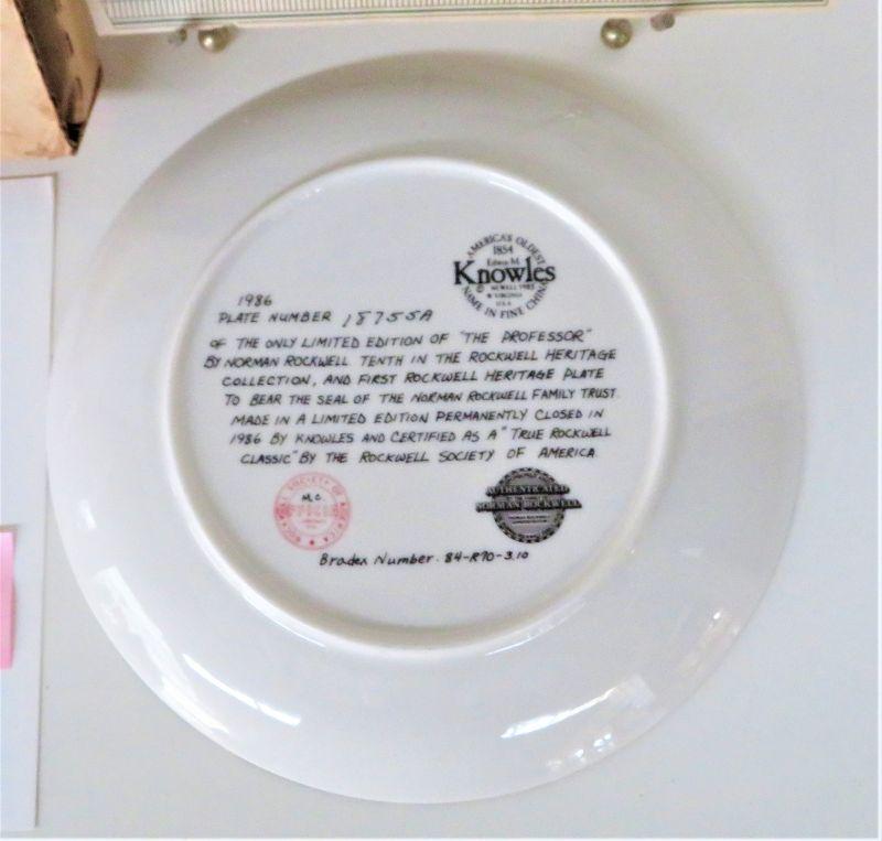 True Rockwell Classic - Norman Rockwell's "The Professor". Limited Edition closed 1986 # 18755A Plate. COA w/ Original shipping box. Contains Certificate of Authticity & Booklet. Rockwell's Heritage Collection. Measures 8.5" diameter. Highly Collectible. Please preview and email questions / concerns prior to bidding.