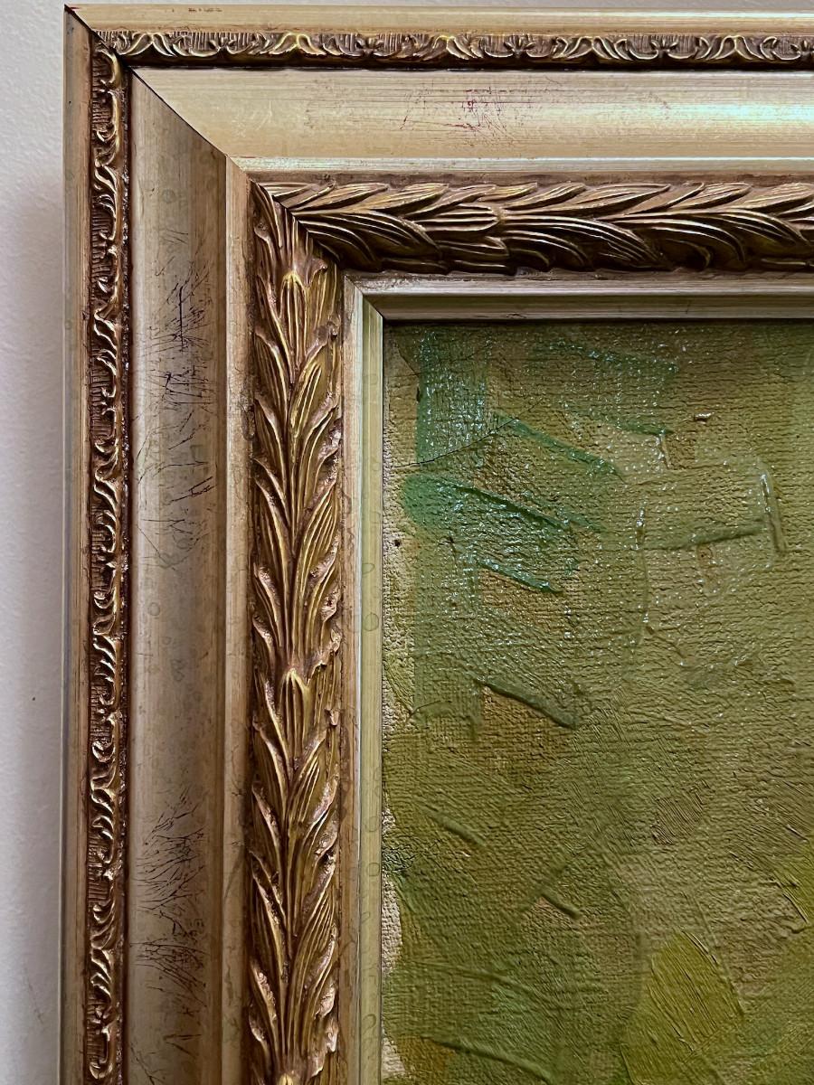 Gorgeous, deep jewel-toned presentation of a thoughtful young woman, framed nicely in a gilt frame.