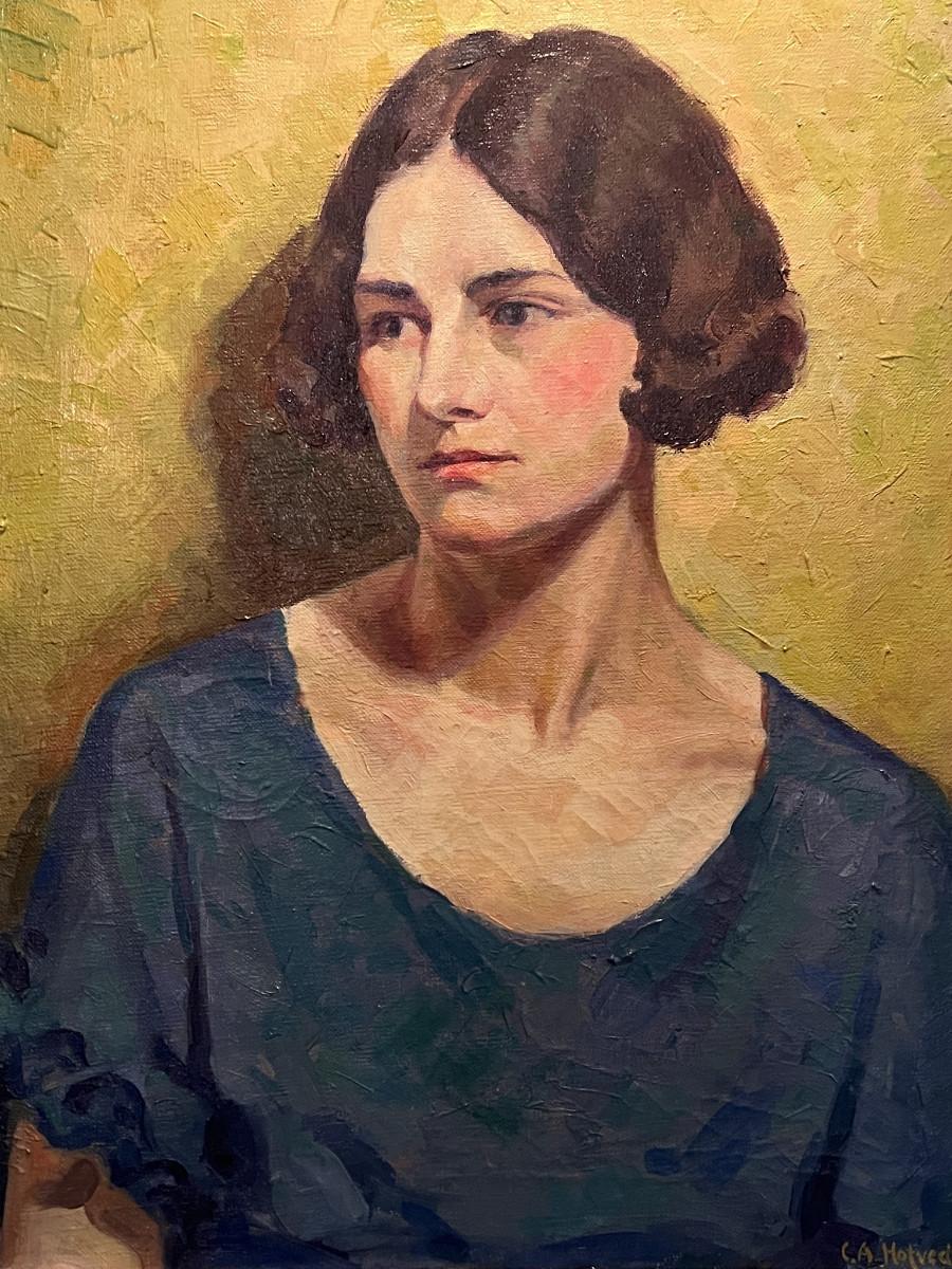 Rare estate find - CA HOTVEDT Original Portrait Painting of a Lovely, Peaceful Young Woman