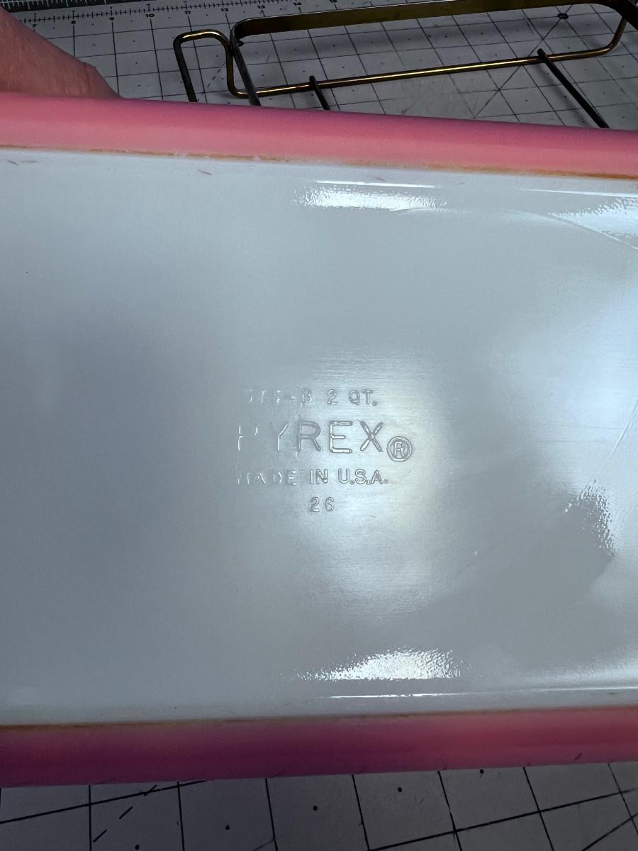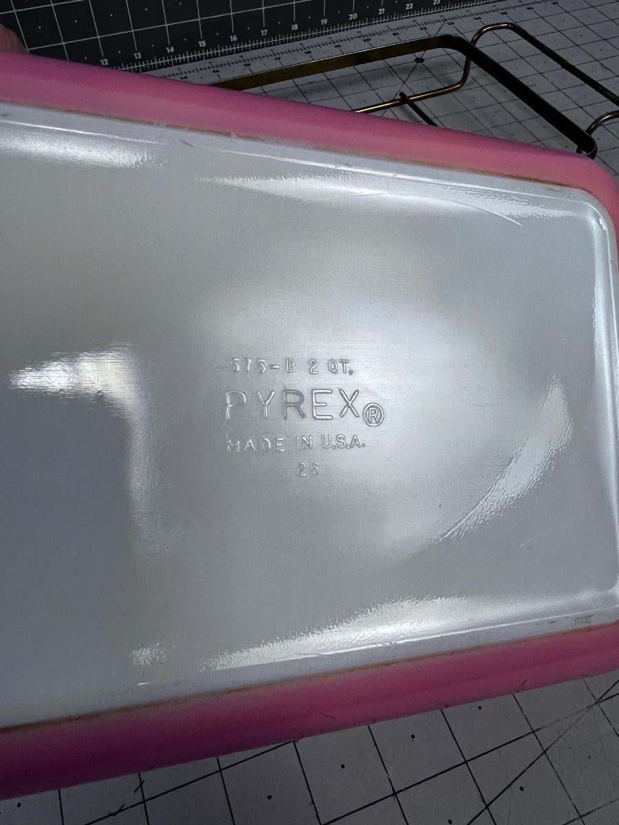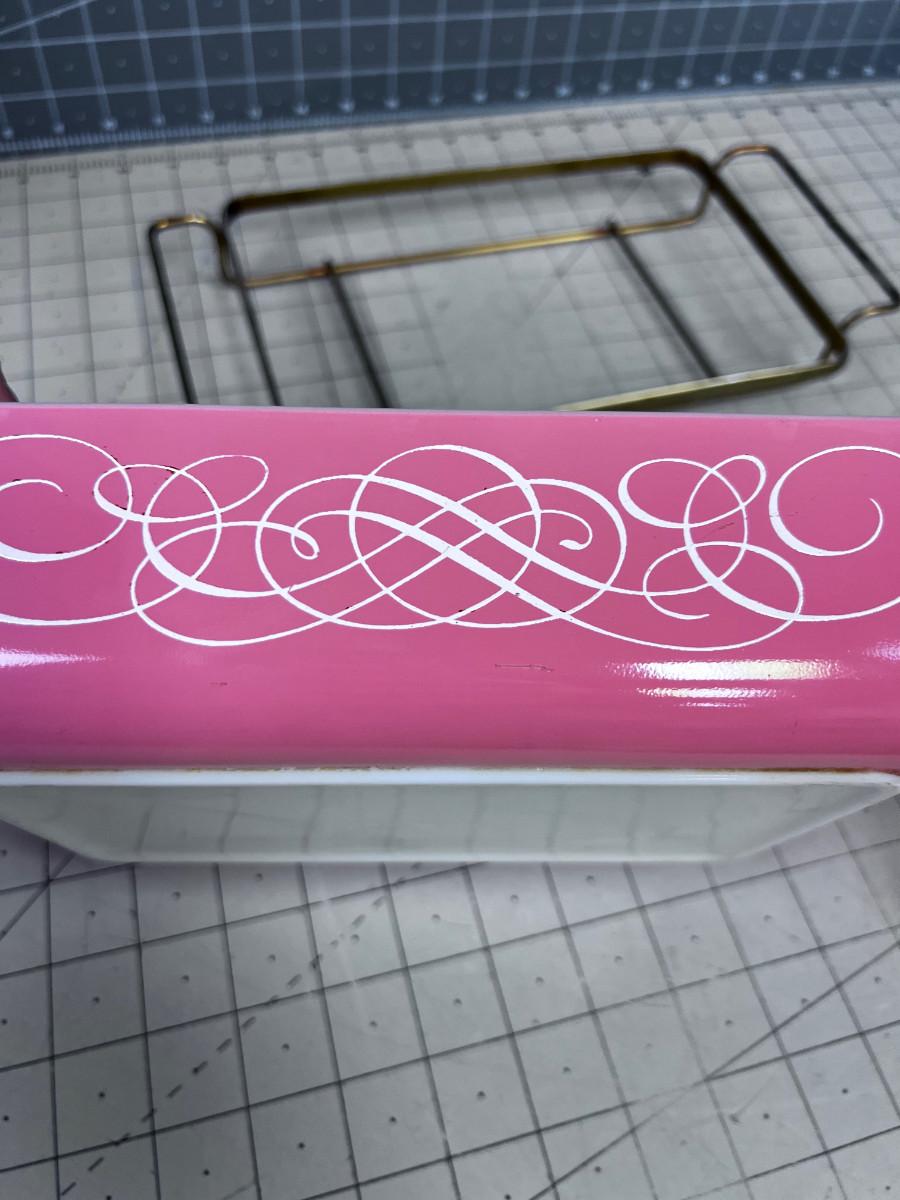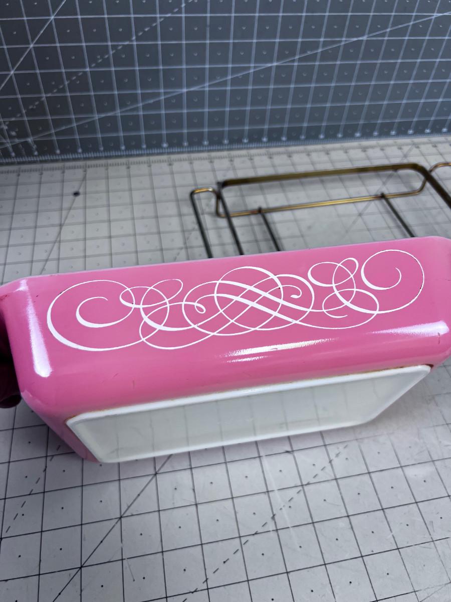 RARE! Pink PYREX Swirl with Lid #575-B 2 Quart Plus Original Wire Cradle