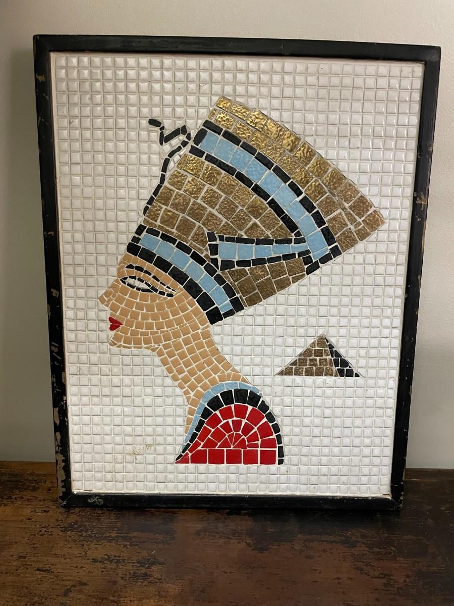 Rare Handmade Queen Norfertite using Mosiac Titles. This item is not signed or the date is unknown.