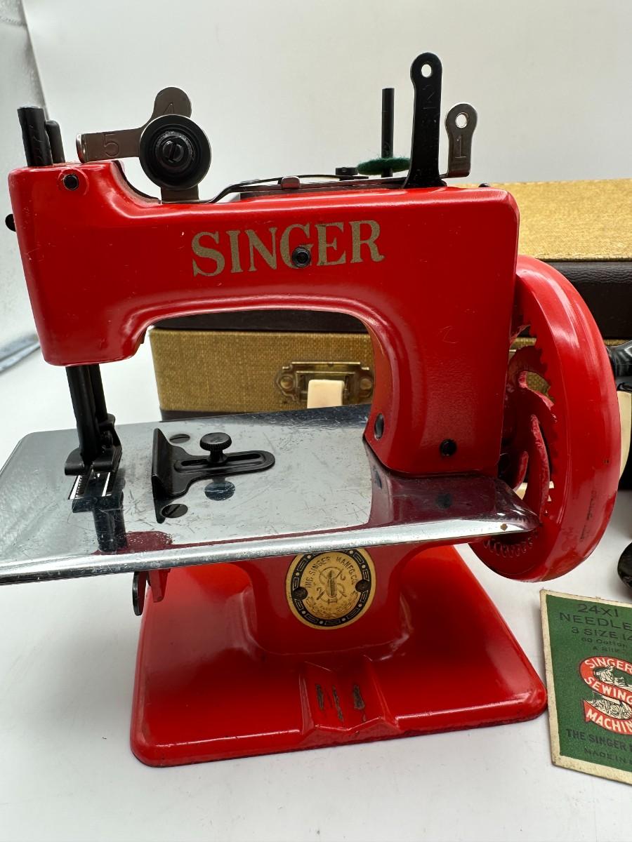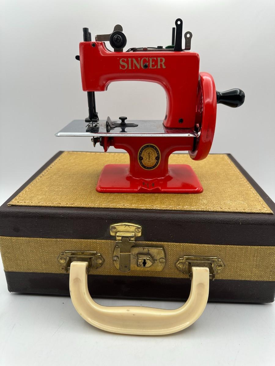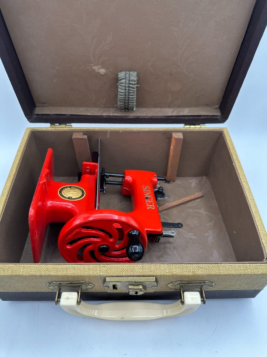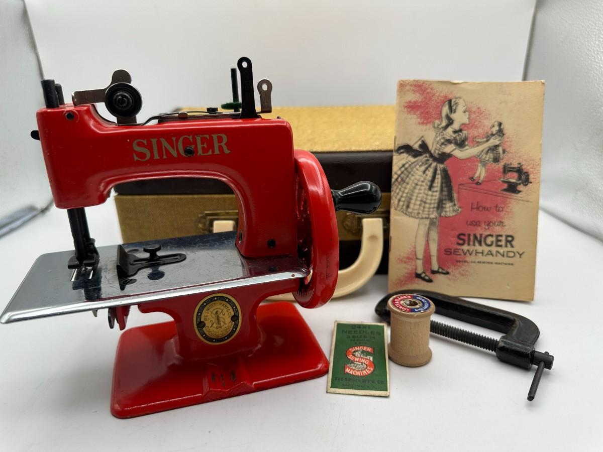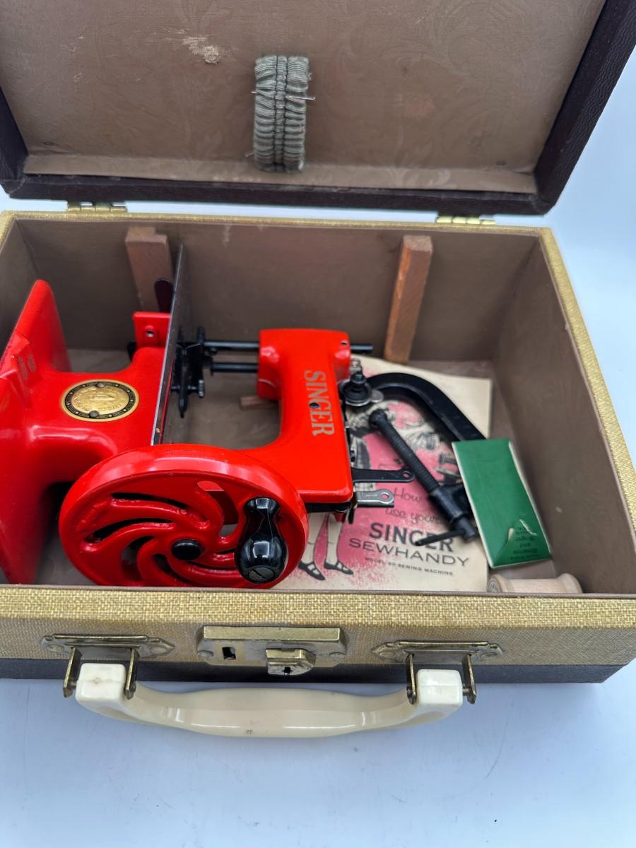 RARE RED Blackside Singer 20 Sewhandy Sewing Machine in Original Trapezoid Case