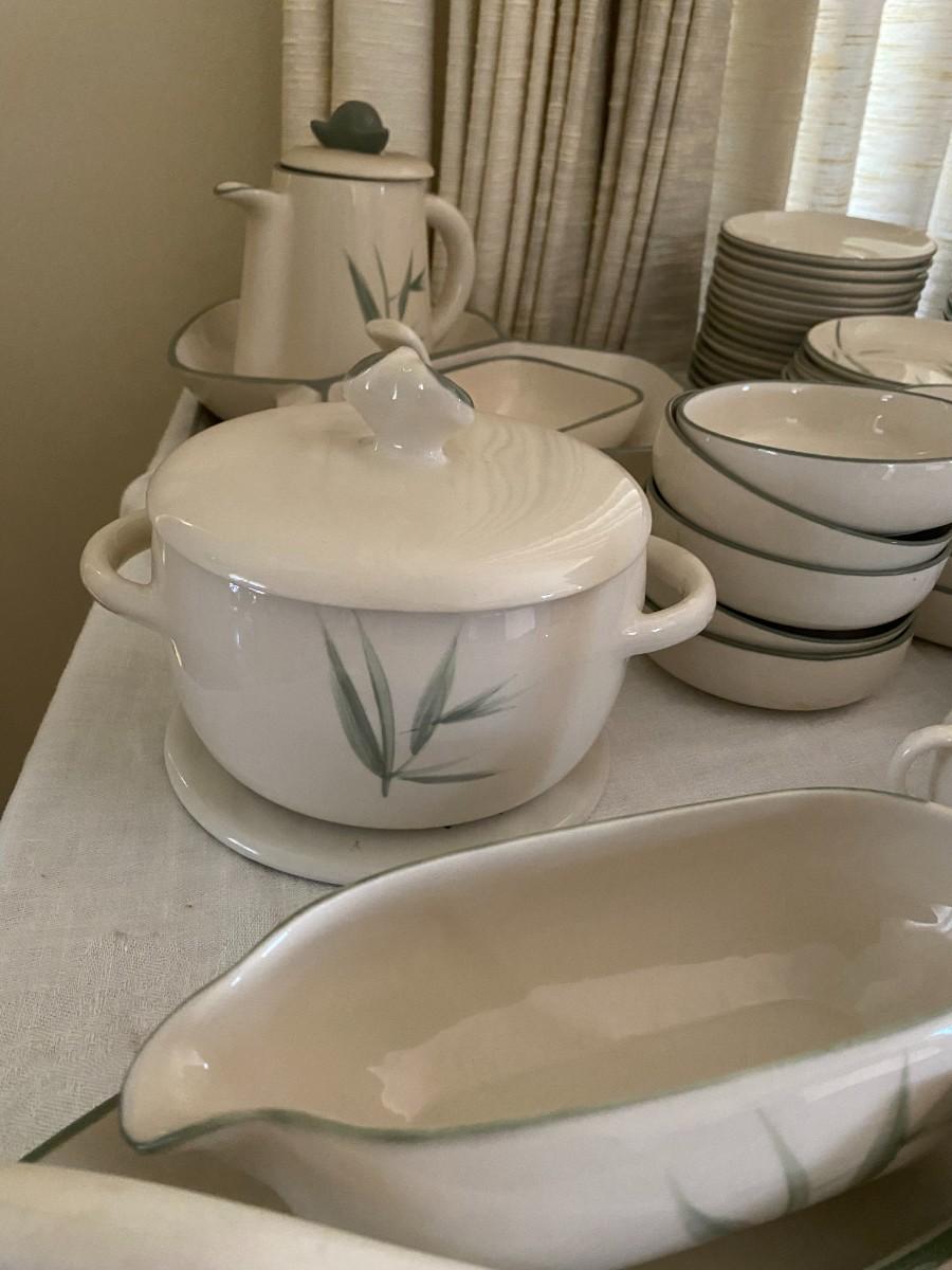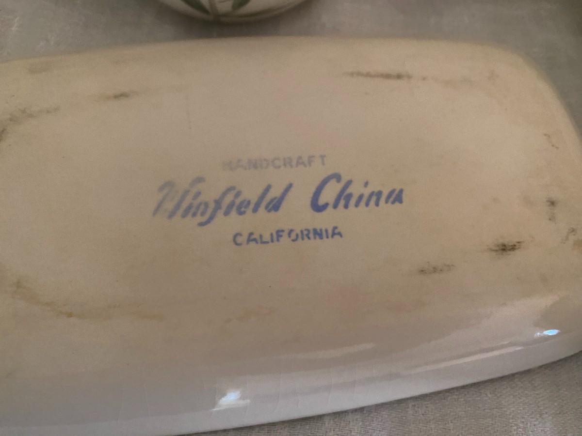 Winfield Pottery was founded in 1929 and continued in production until 1962. The company began in Pasadena, California but moved to Santa Monica in 1946. After 1946, Winfield sold some of their rights to the American Ceramics Company Full set of plates and extension pieces.