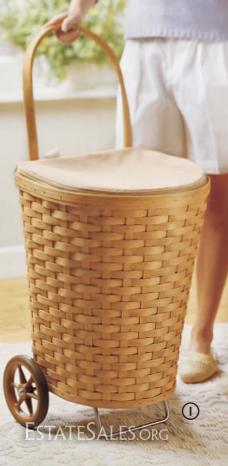 RARE!! and Signed 2005 Shopping Cart Basket comes complete with Sage Zippered Liner w/Pockets and Protector. 17" x 14 3/4" x 38 1/2" Gently used and well loved! A few small scuff marks on front. Wheels roll, too! This is a wonderfully large piece of history.