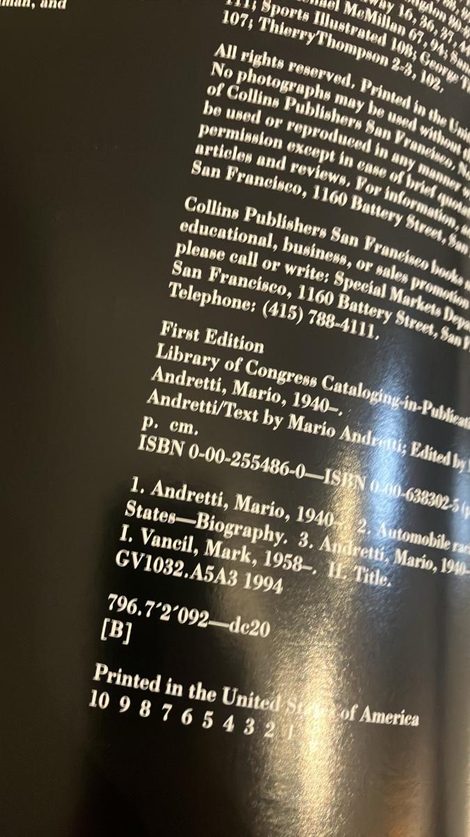 Bonus Companion: Signed Paperback "Andretti: Mario on Mario" (1994 First Edition)