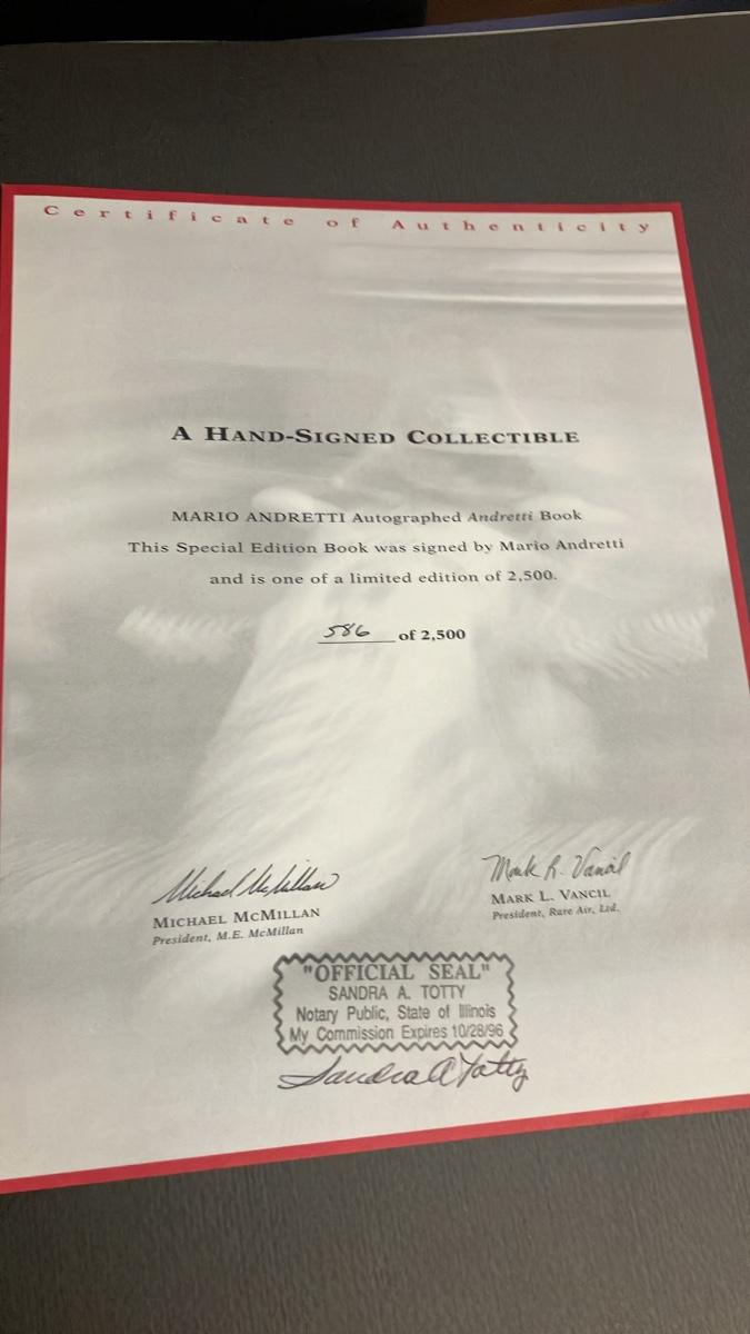 Rare Signed Mario Andretti Limited Ed. Book #586/2500 + Inscribed Paperback Set