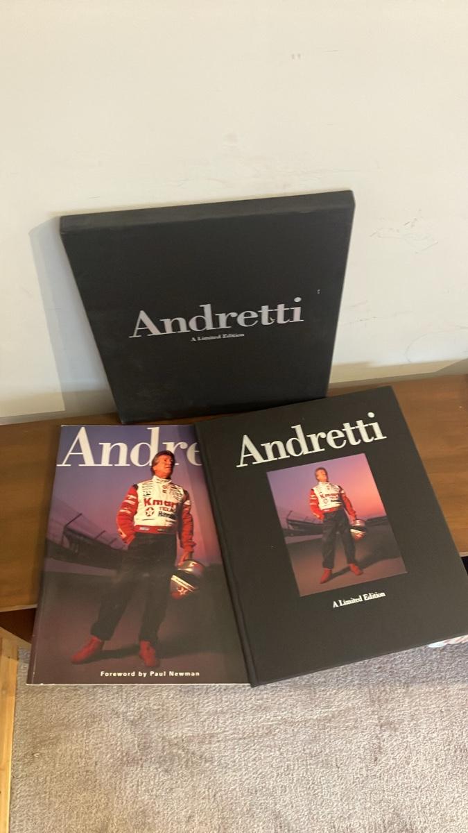 Mario Andretti Signed Limited Edition "Andretti" Hardcover (#586/2500) + Inscribed First-Edition Paperback Set
