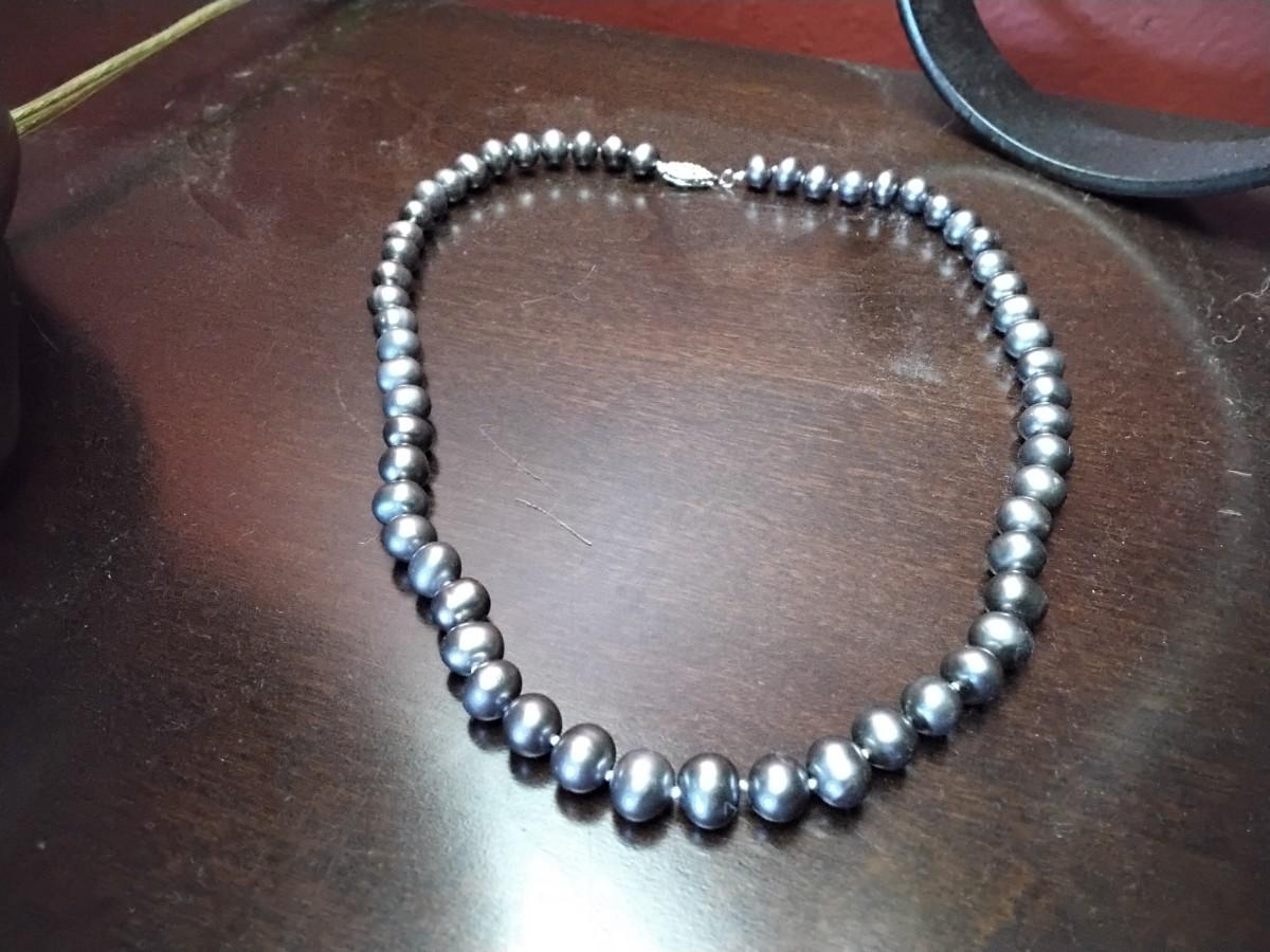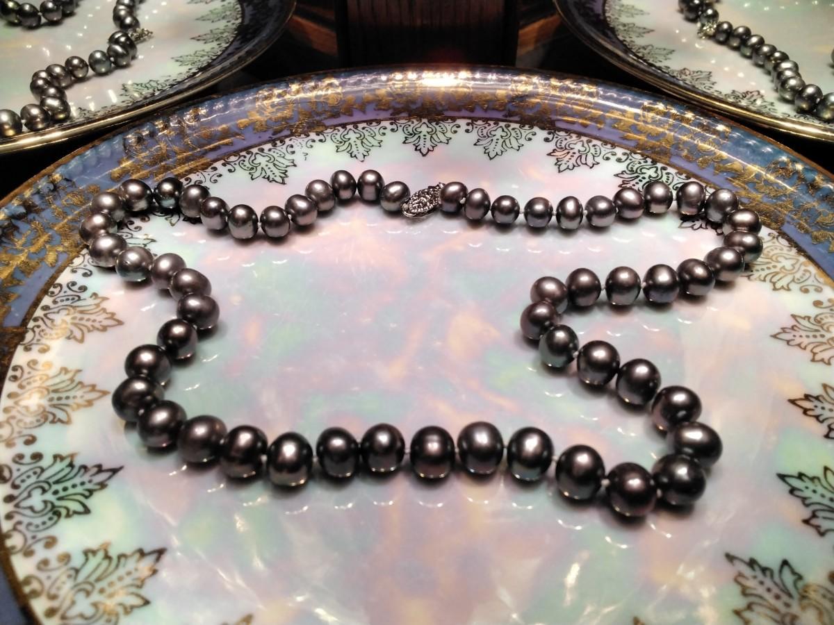 Rare silver blue tahitian pearls 7.5 mm 16" necklace