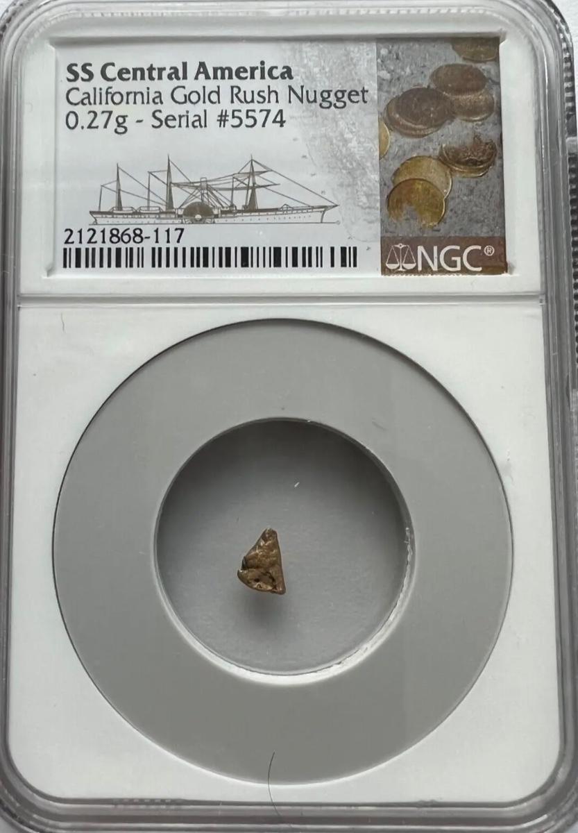 NGC graded and authentic. Very few pieces of this ship wreck are in the public hands. The SS Central America was a ship carrying gold from the gold rush which went down in the 1800s.