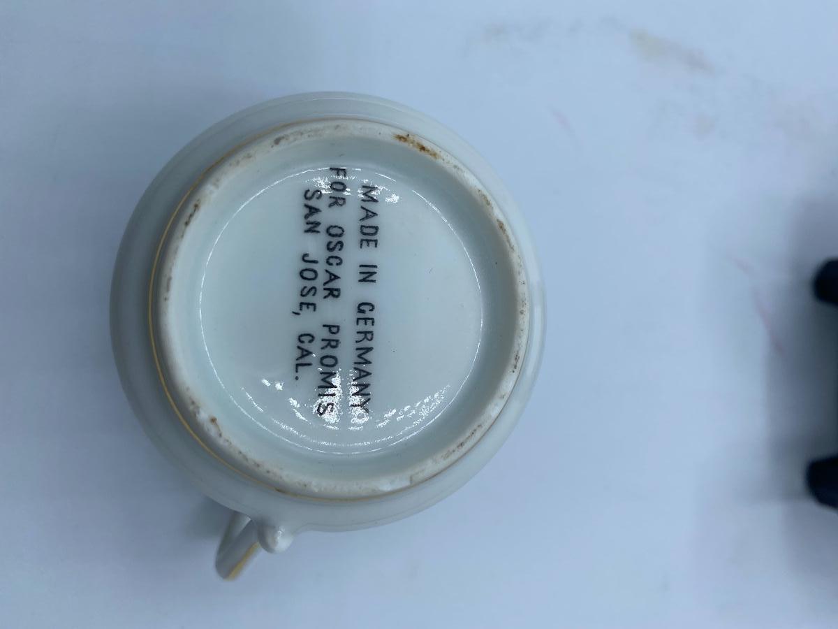 Fabulous rare custom cups and saucer “ Made in Germany for Oscar Promis of Stanford University” . Mr. Promis lived 1855-1925 in Santa Clara California.