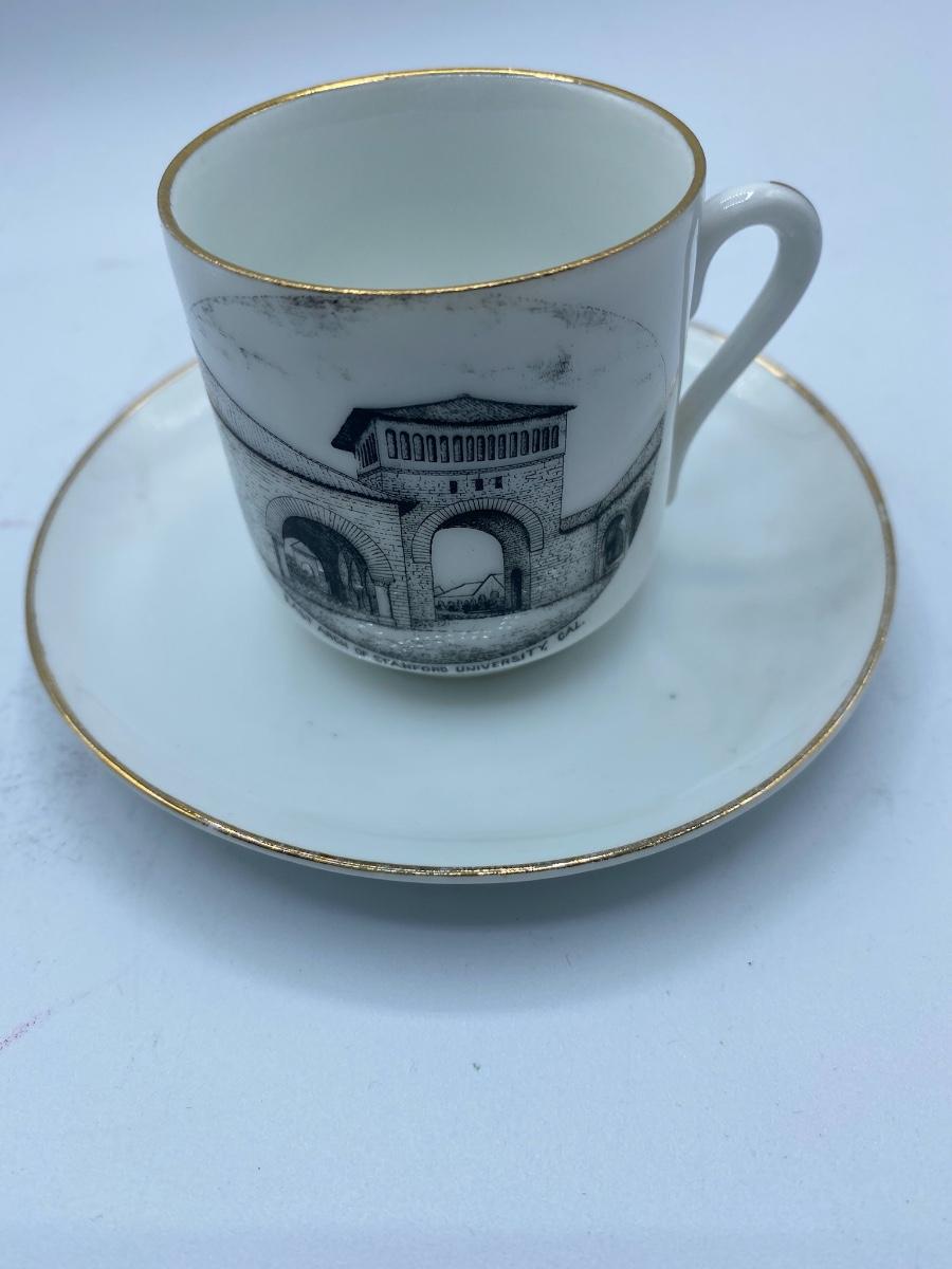 Detailed depiction of the East Arch at Stanfor University, German made as shown on bottom of cup. Perfect collectible for the Stanford lover or collector or just for espresso in the afternoon. Cup 2 1/4" height, mouth is 2" Saucer 4 1/2" diameter. Perfect condition.