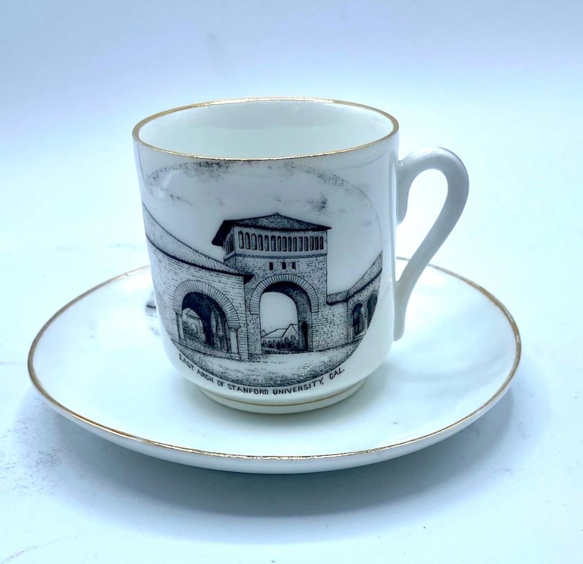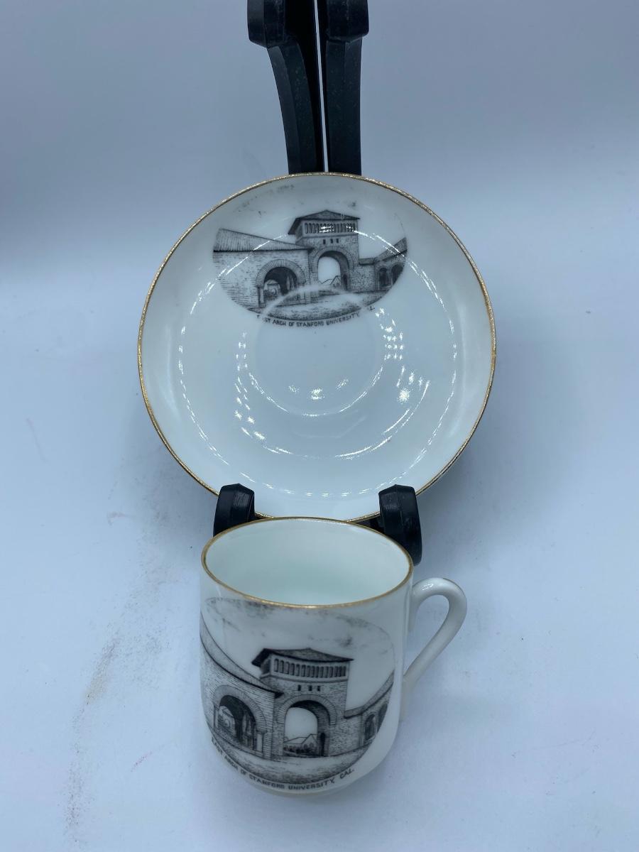 Rare STANFORD UNIVERSITY Antique German Porcelain Demitasse Cup and Saucer of of East Arch Entry