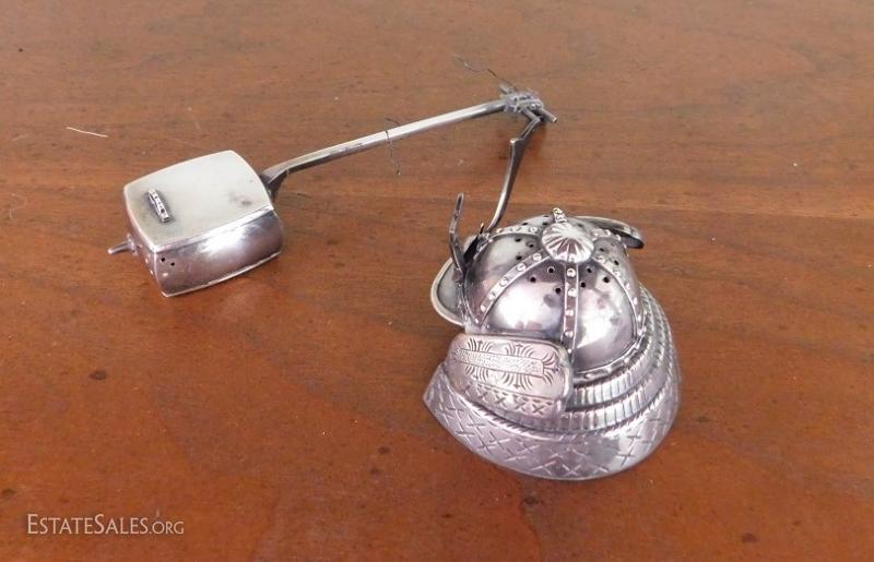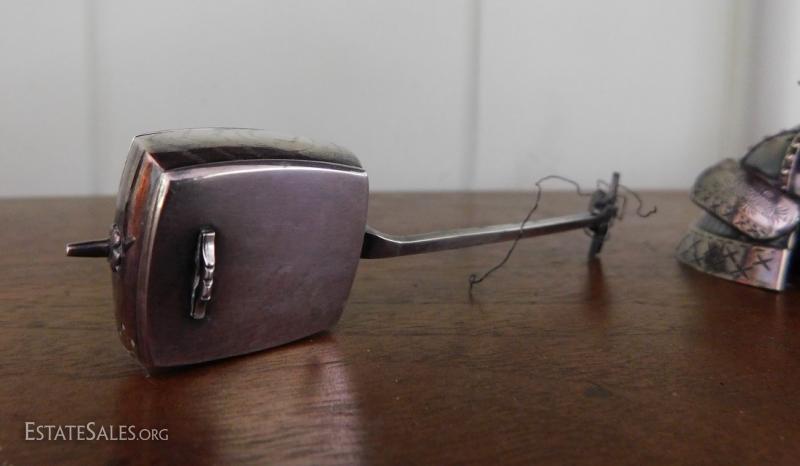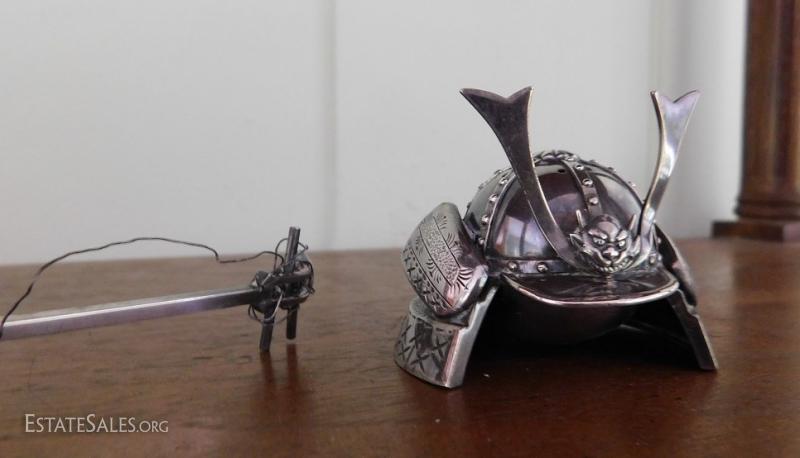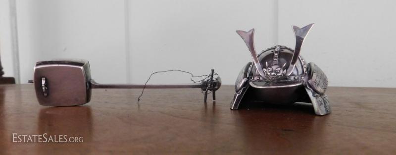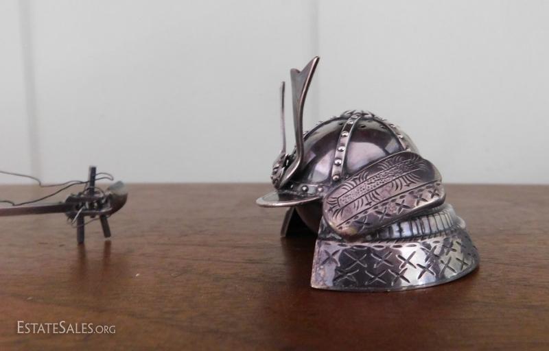 Rare Japanese Sterling Asahi Shoten salt and pepper shaker. Both pieces clearly marked . One piece is a Samurai warrior helmet and the other is the shamisen instrument. The metal string has sprung, but otherwise an extremely nice set. Highly collectible. Shipping Available.