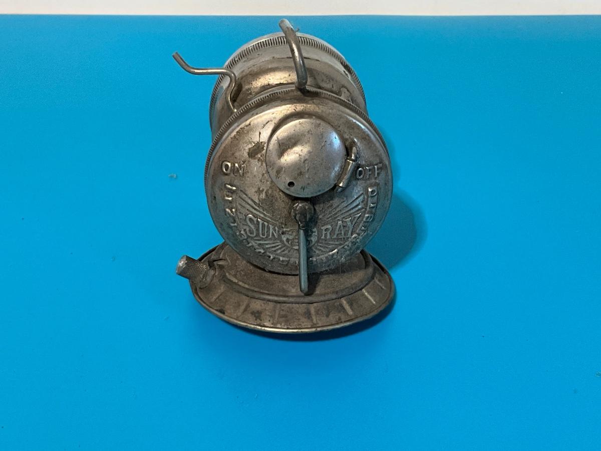 Nickel plated Sun Ray small carbide lamp with starburst reflector
