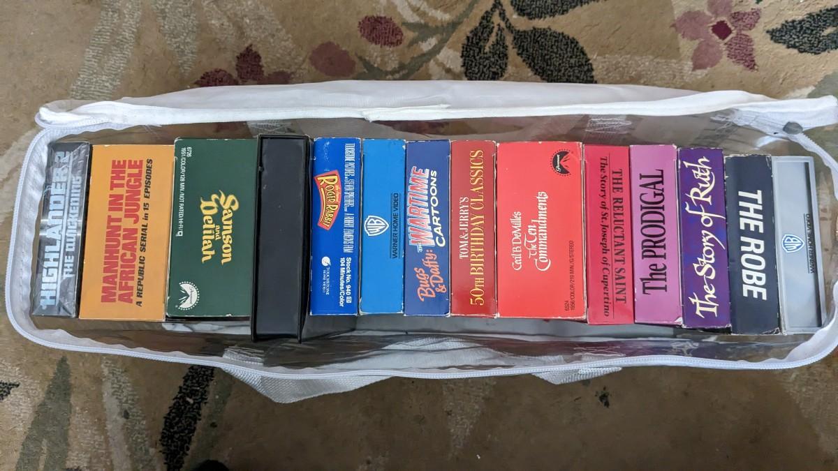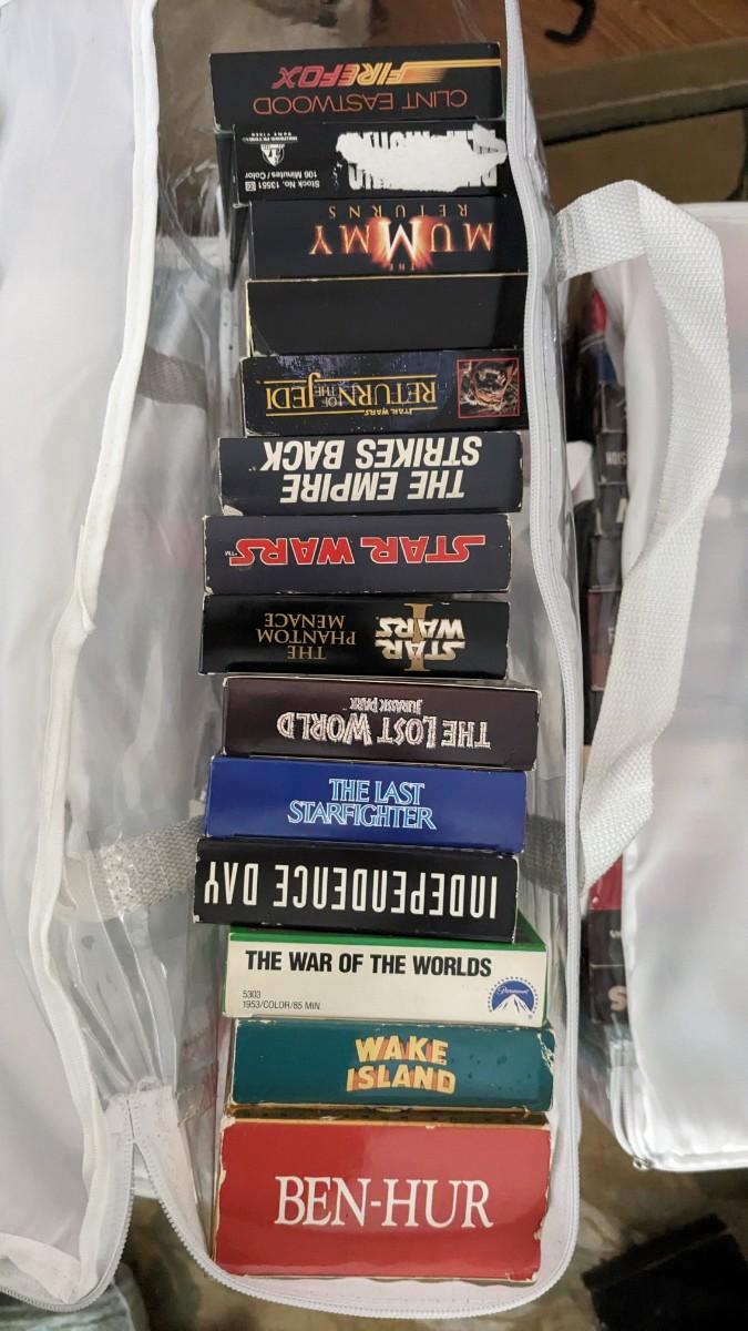 this is a MASSIVE amount of very rare and hard to find old hollywood VHS tapes. A Lot of these titles aren't even available on streaming services or on DVD. A very neat collection. All titles noted in photos. Specialty handling will apply. Inquire for more details. bdrm2
