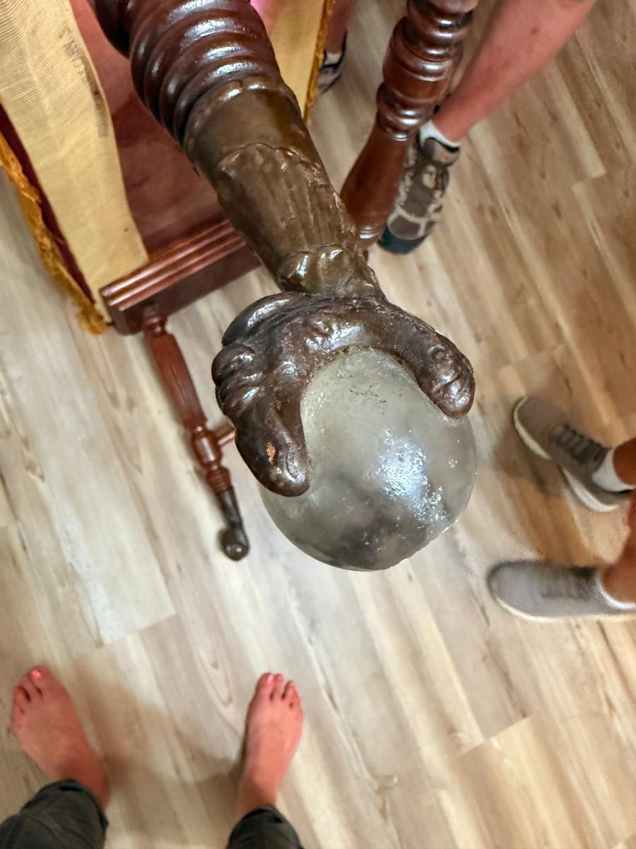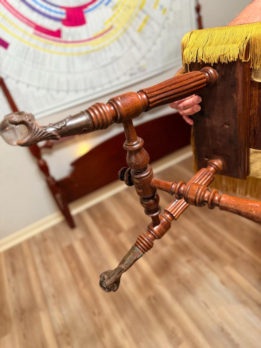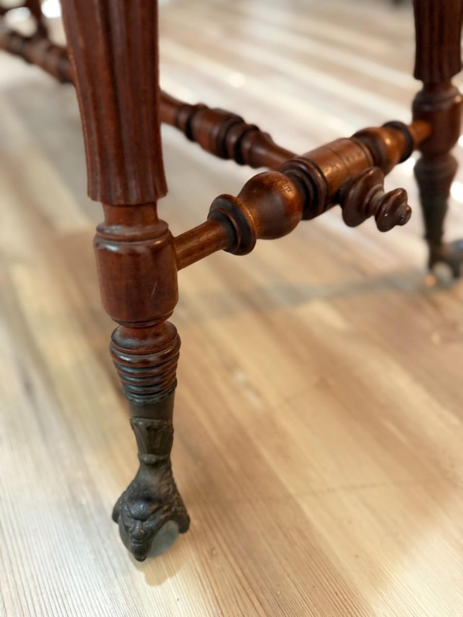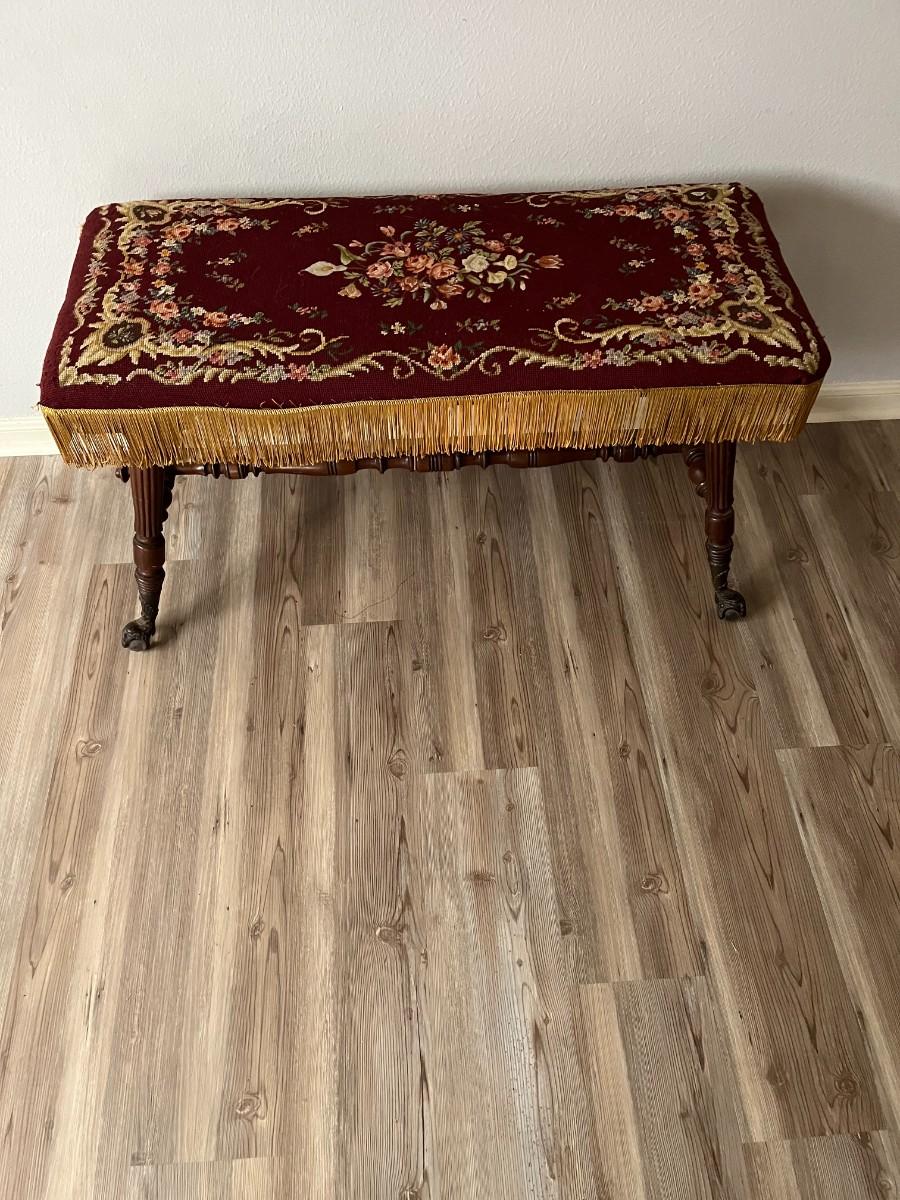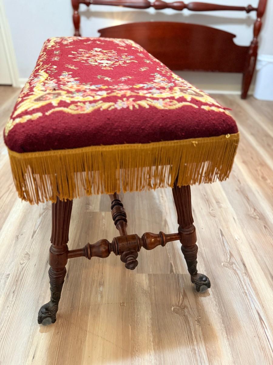 RARE Victorian Metal Cast Claw Glass Ball Bench with NeedlePoint Cushion