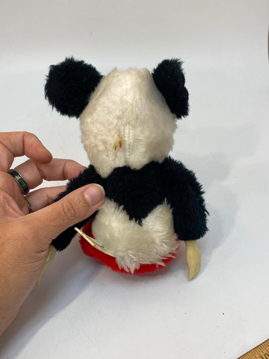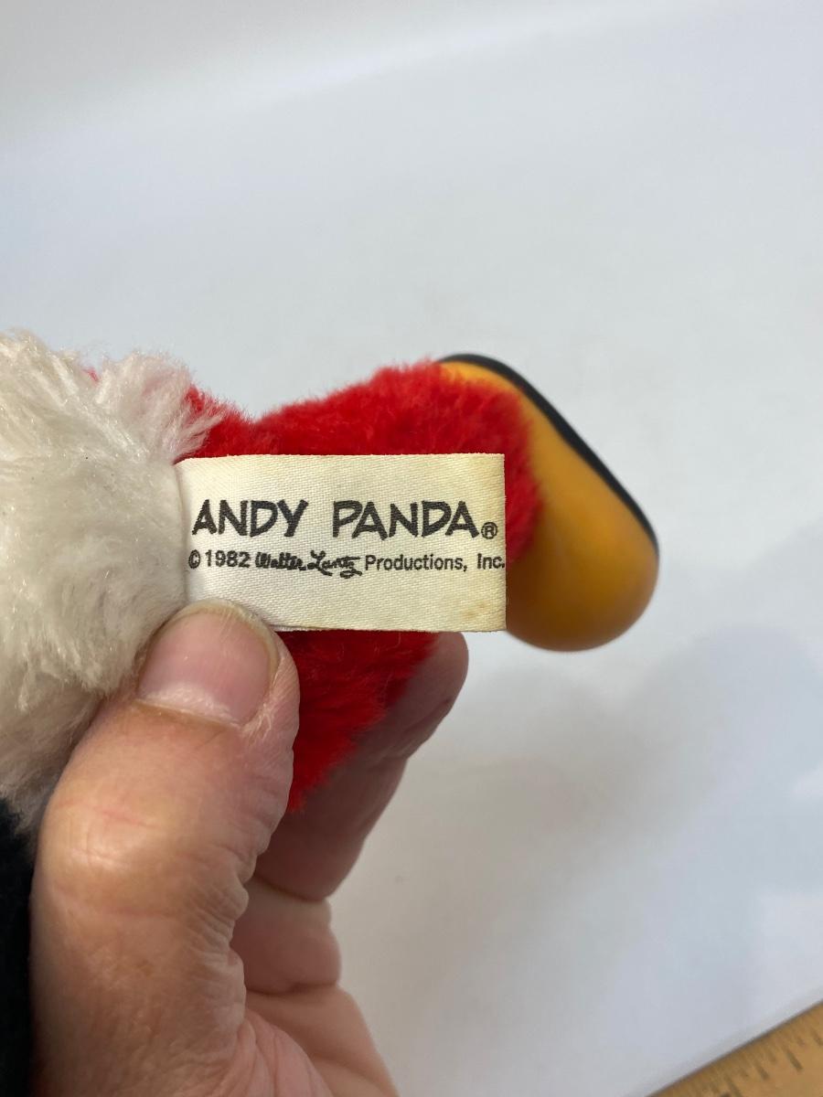 Rare vintage 1982 Andy Panda stuffed plush doll from Walter Lantz. Has butt tag still attached and hanging loop but no hang tag. Some discolor and wear from age. About 8" size.