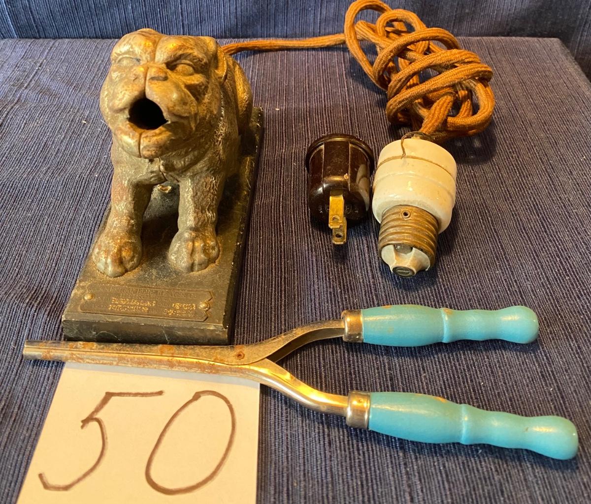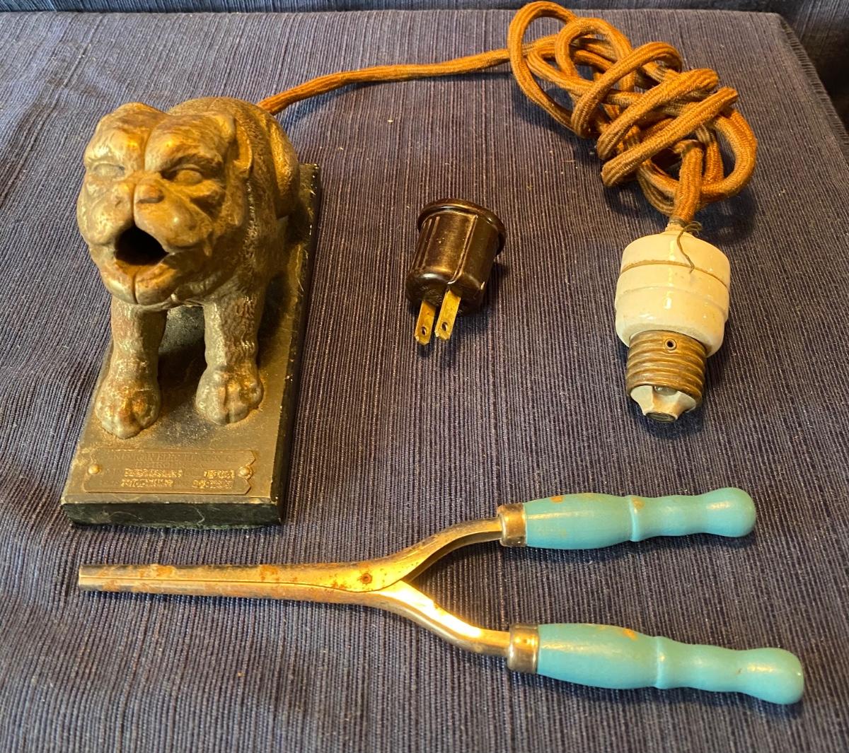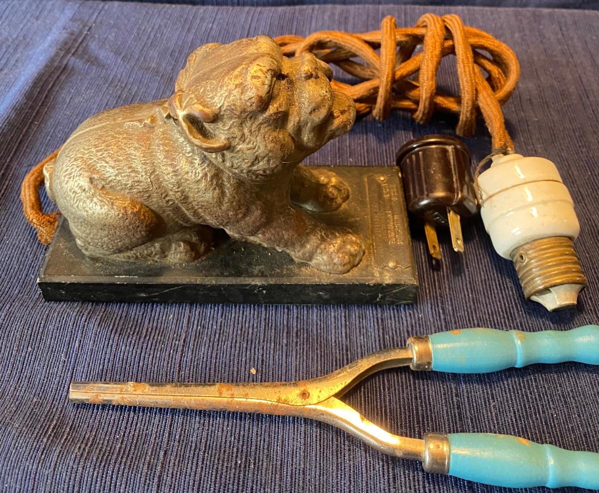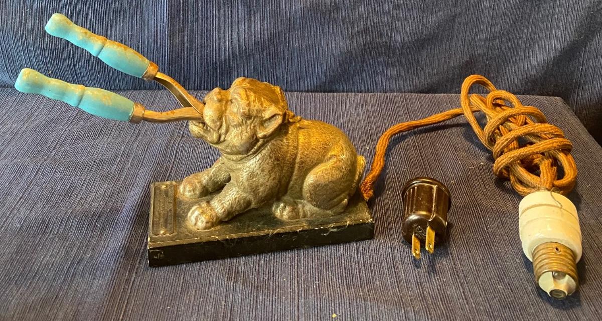 Rare Vintage Cast Bulldog Curling Iron Heater