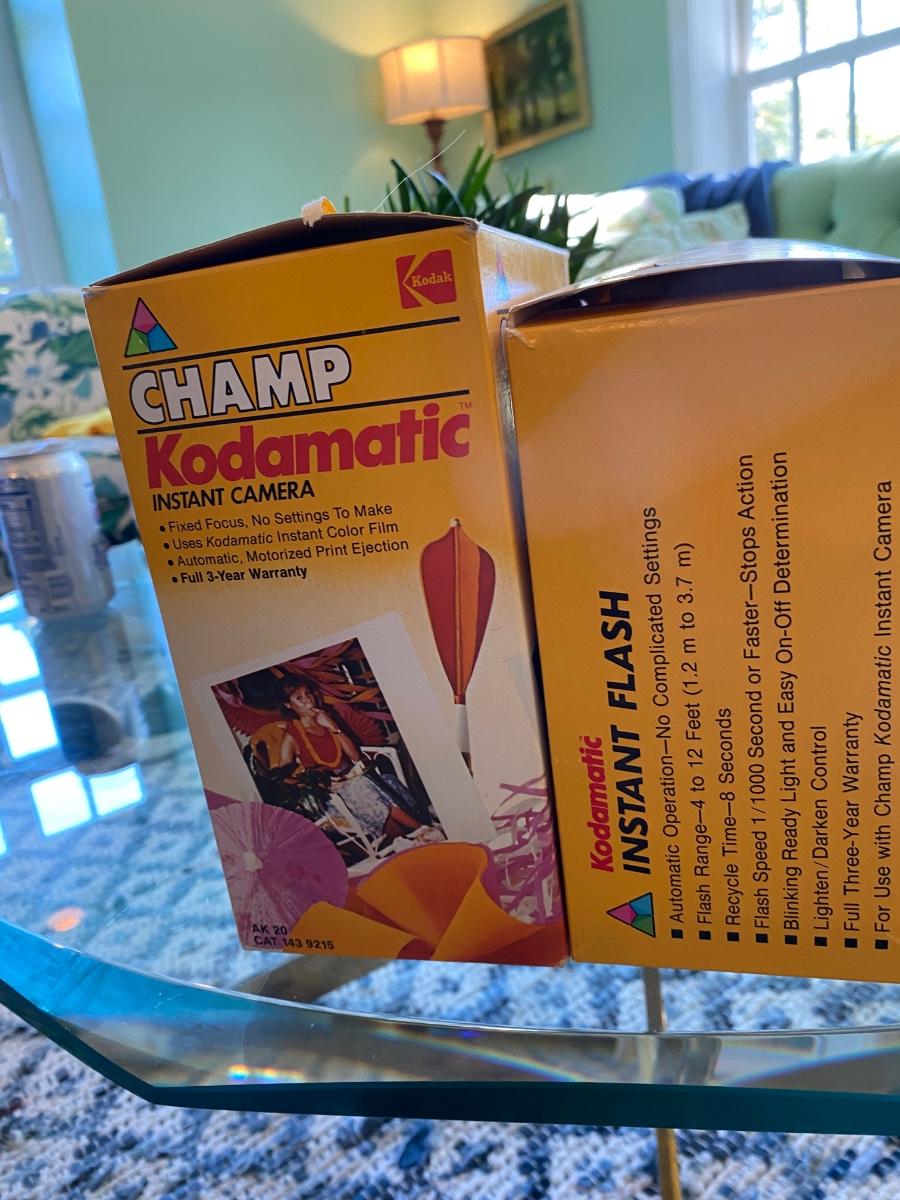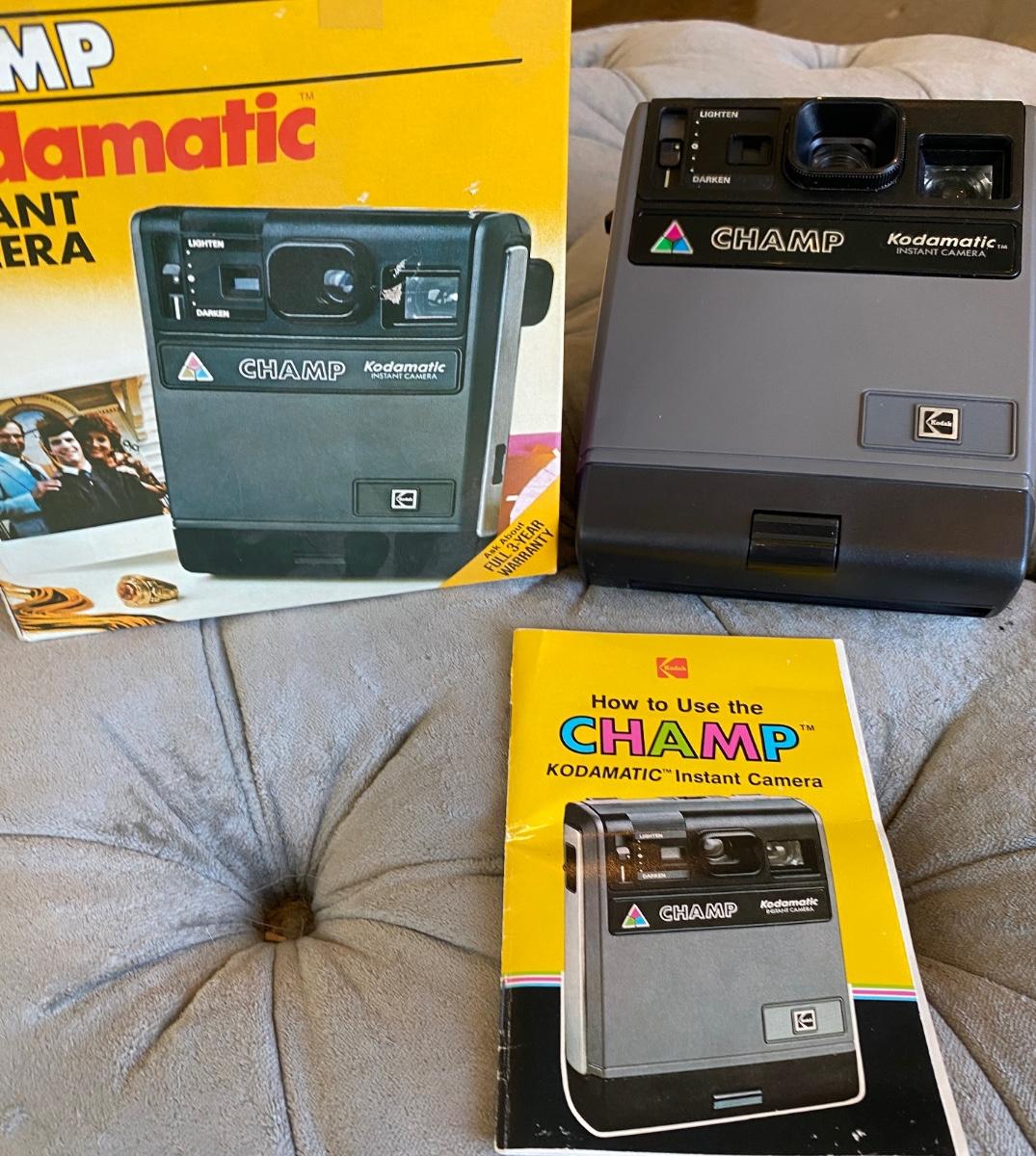 Unused in original box Champ Instant Kodamatic Camera and Flash ! Instruction booklet!