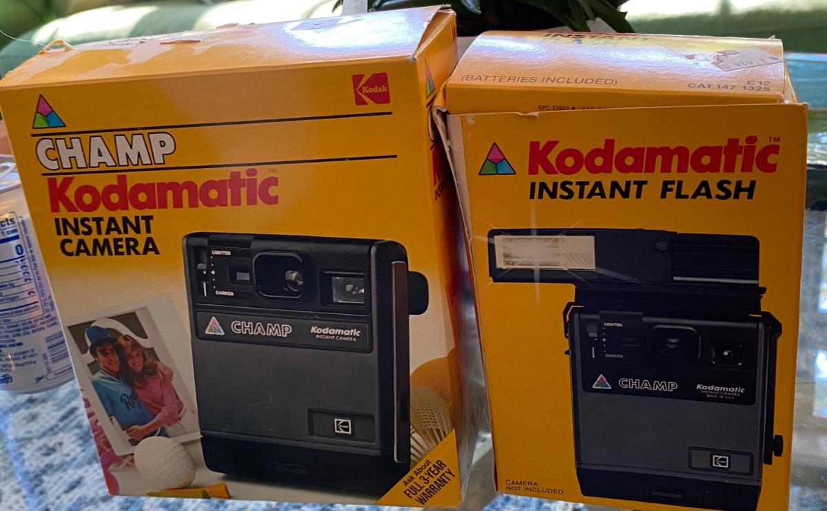 RARE Vintage CHAMP Kodak Kodamatic INSTANT CAMERA and INSTANT FLAST in Orig Box