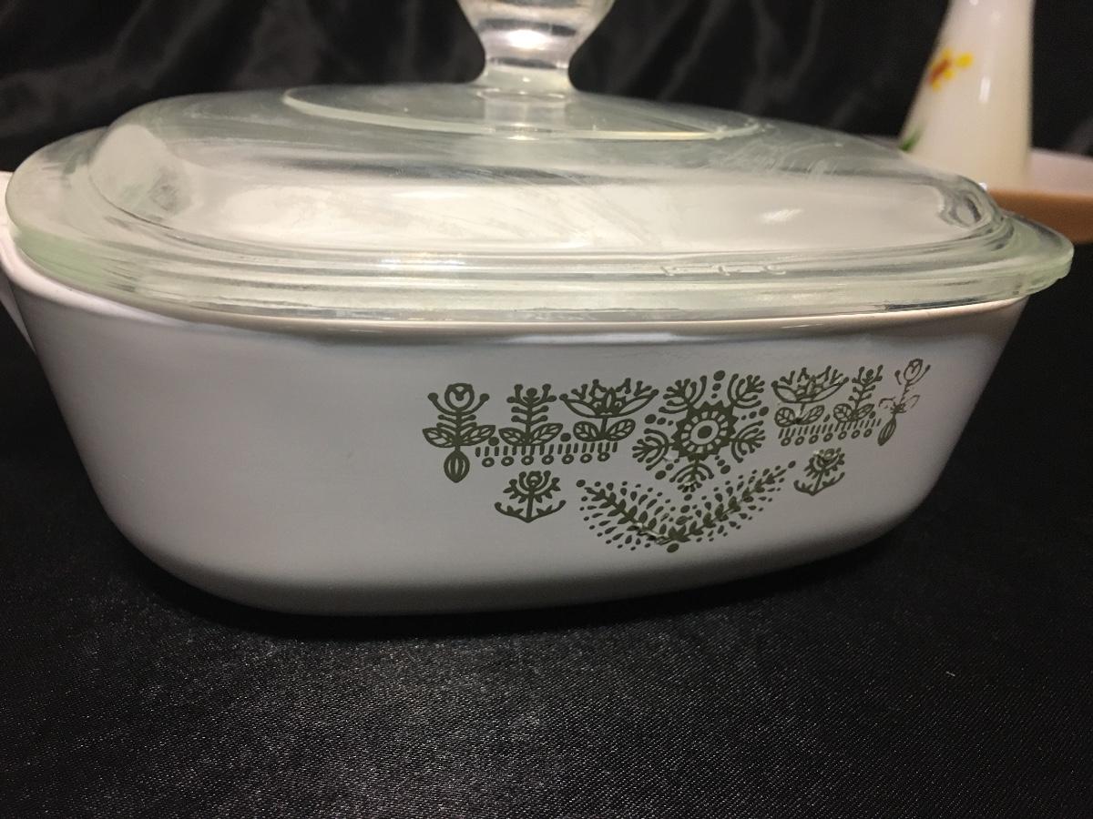 Rare Vintage Corning Ware Casserole 7' Dish w/ Lid  JC Penney Green Pattern JCP-1B