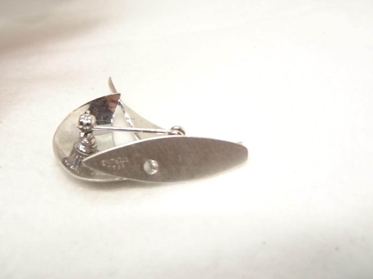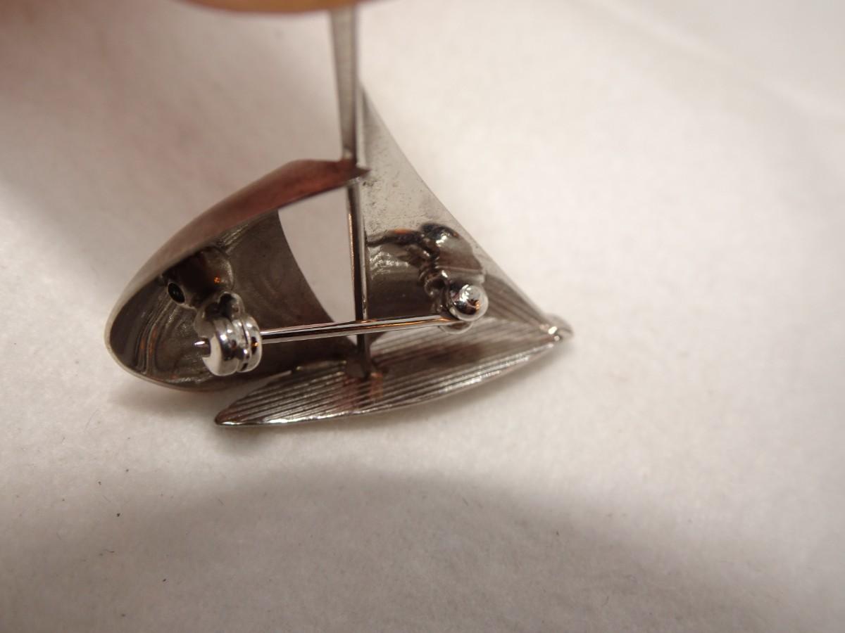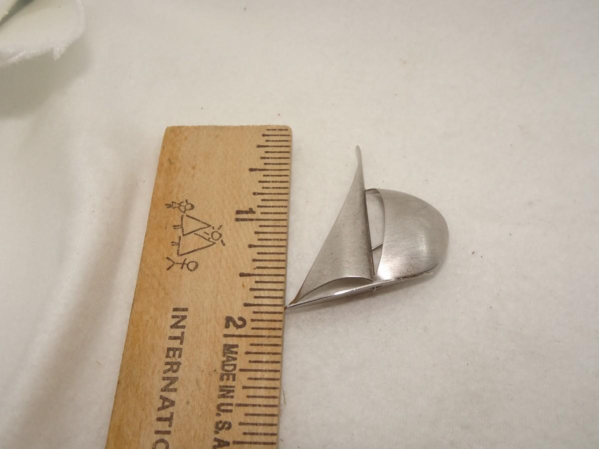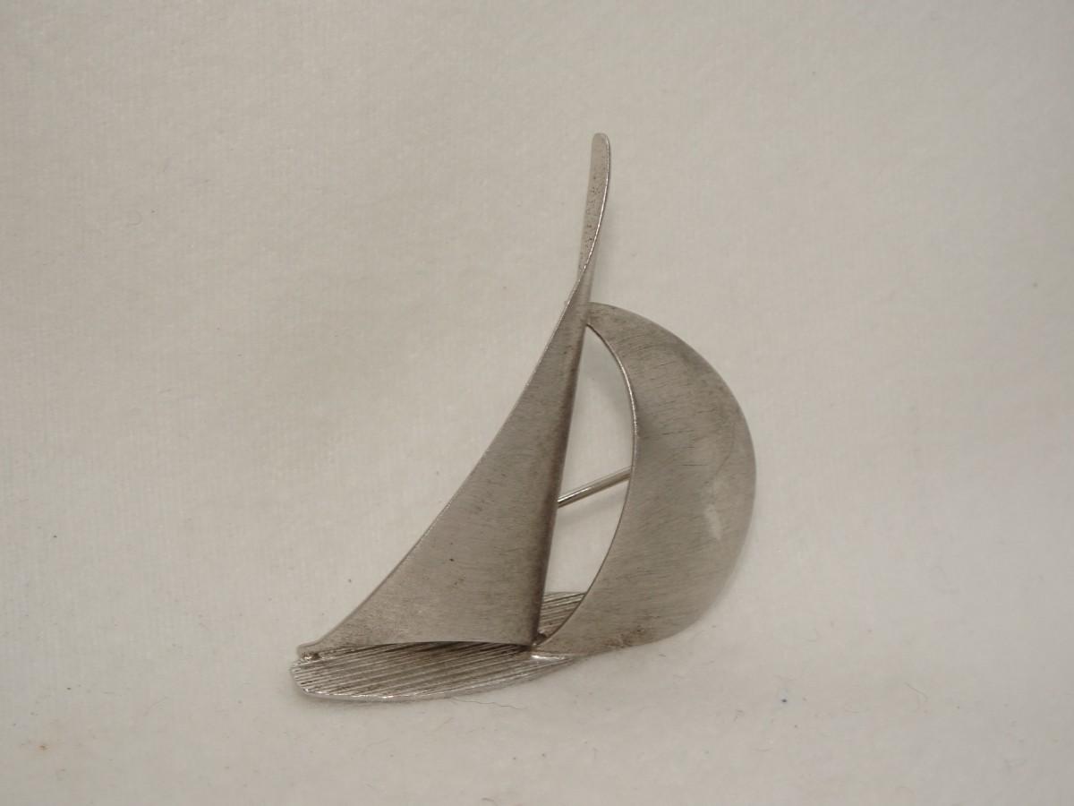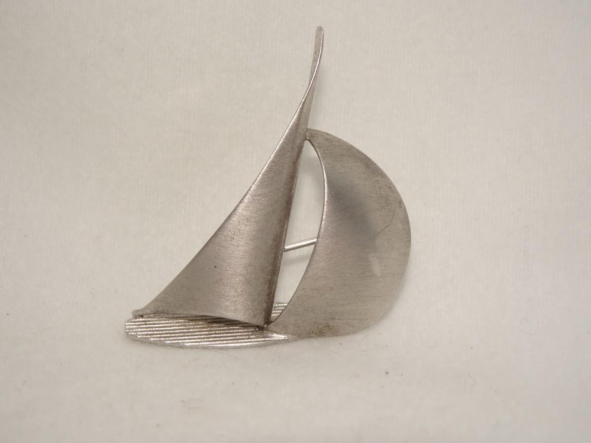 Rare Vintage Designer Beau Sail Boat Brushed Sterling Silver Brooch Pin
