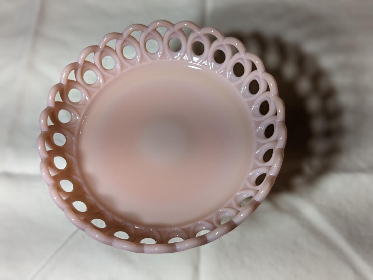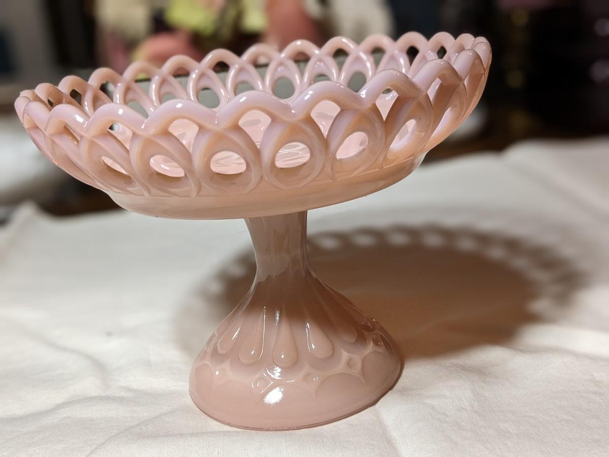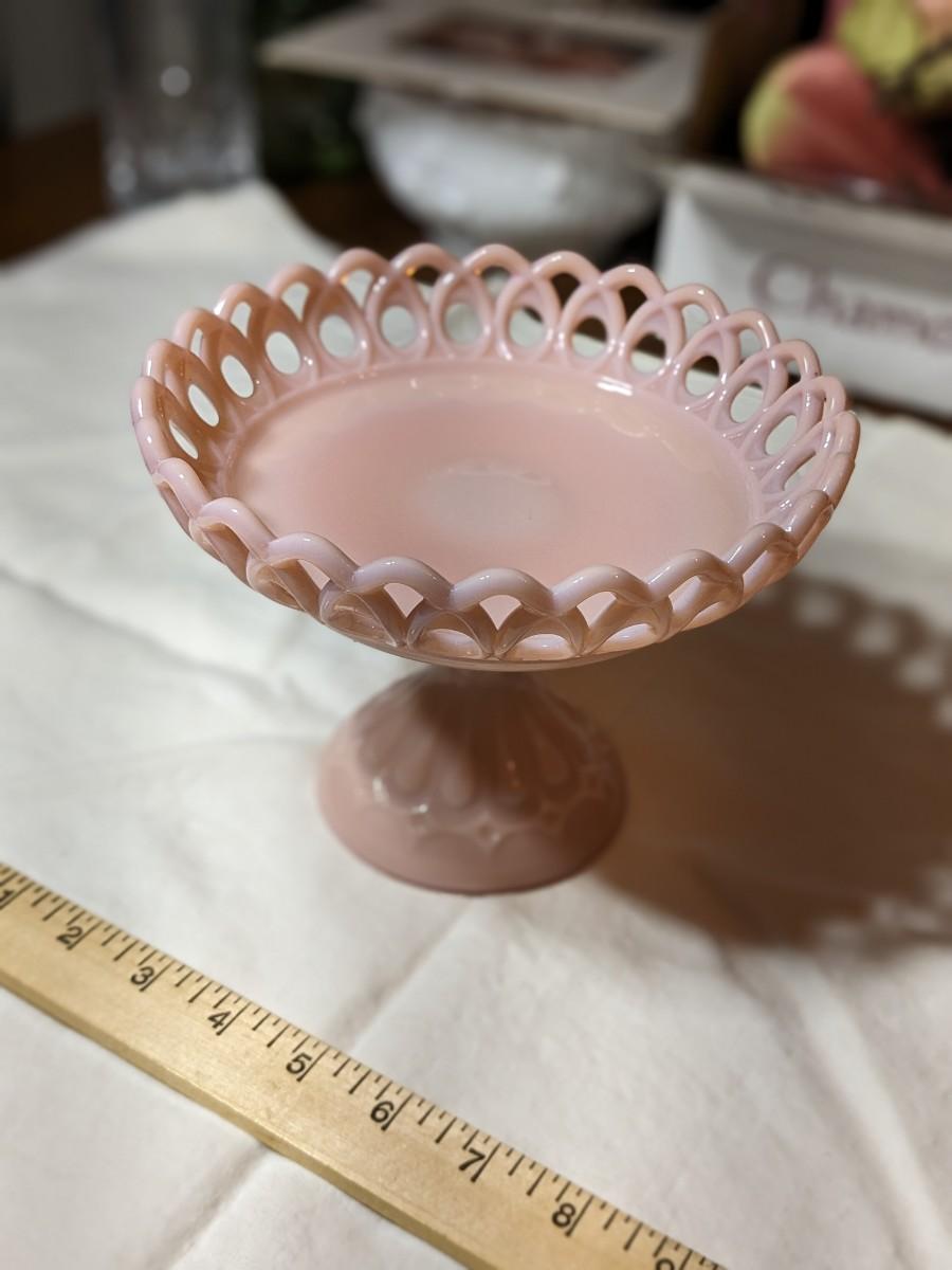 Rare Vintage Fenton Lacy Edge Pink Milk Glass Dish