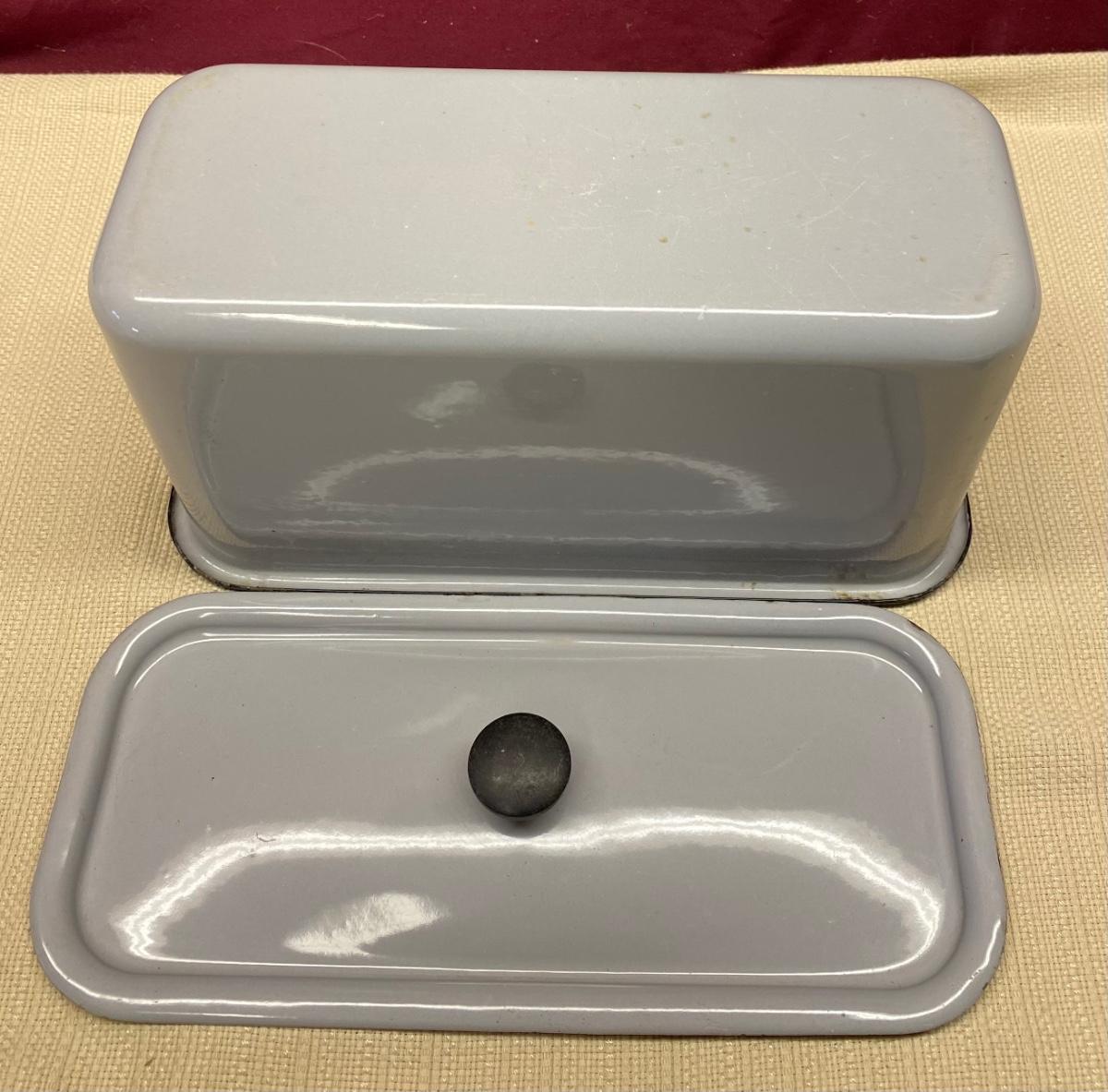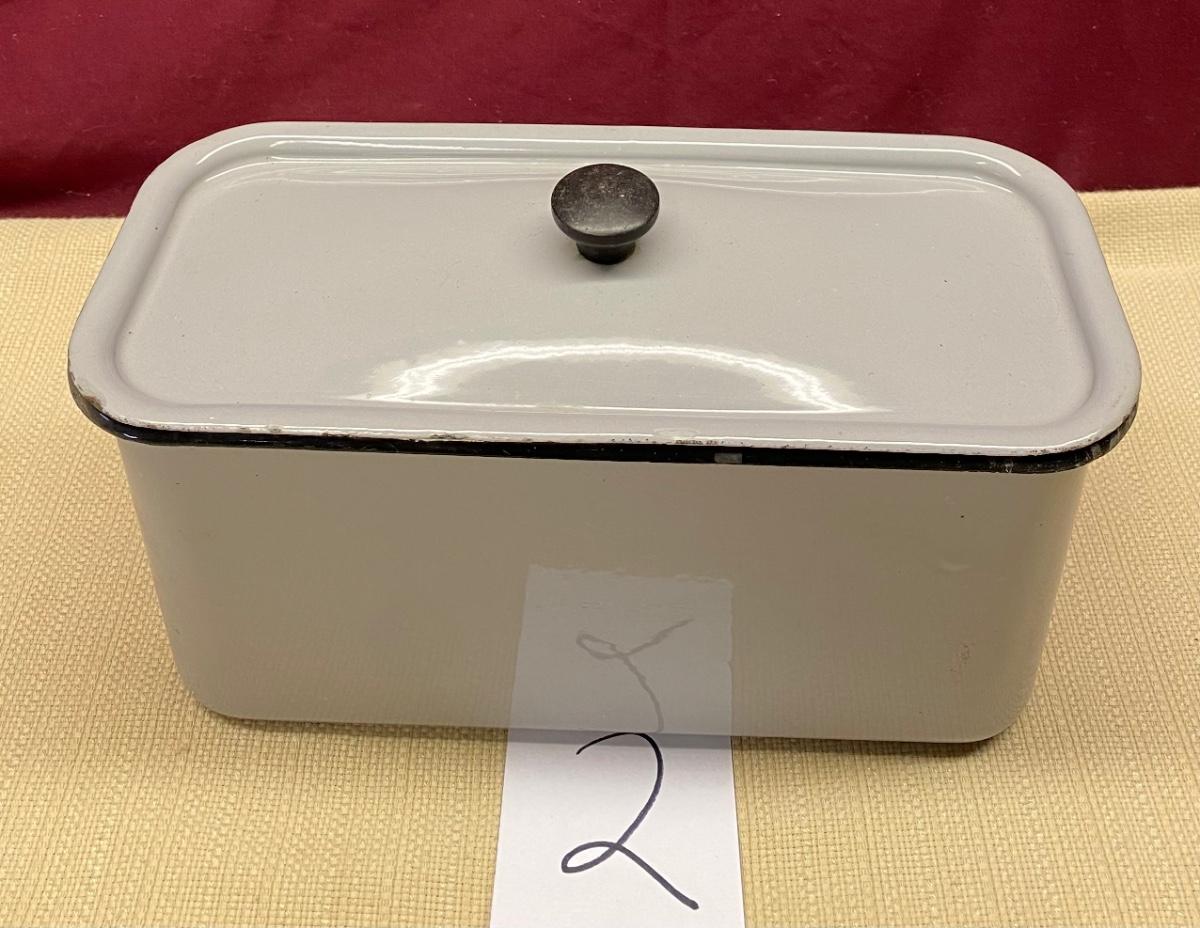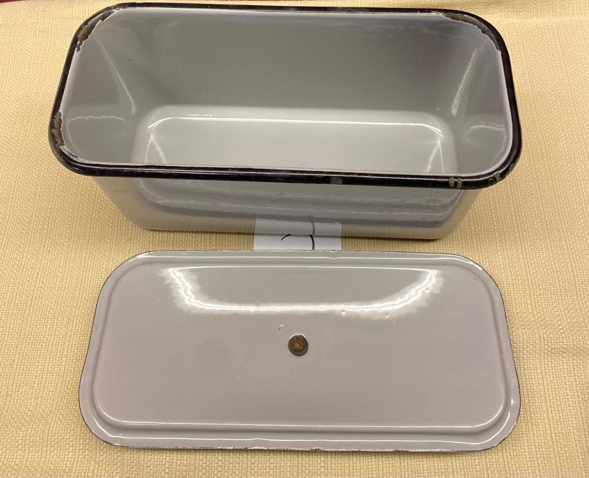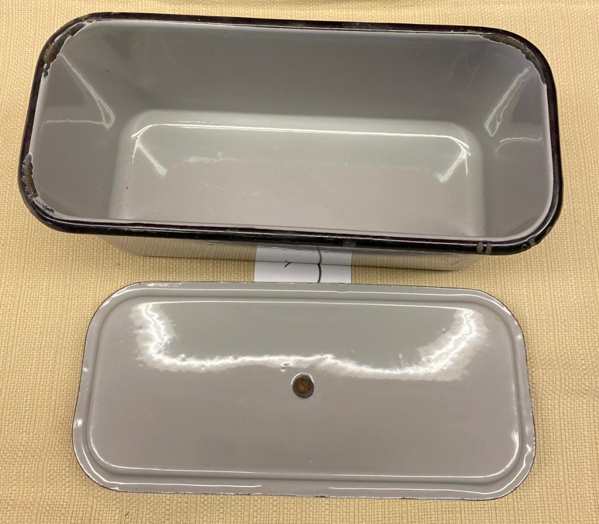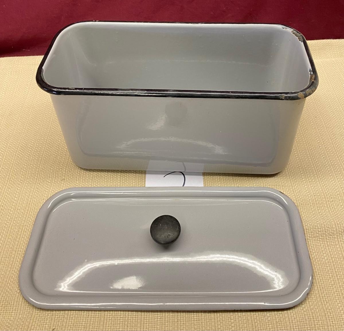 Rare Vintage Gray Enamelware Canister w/Lid