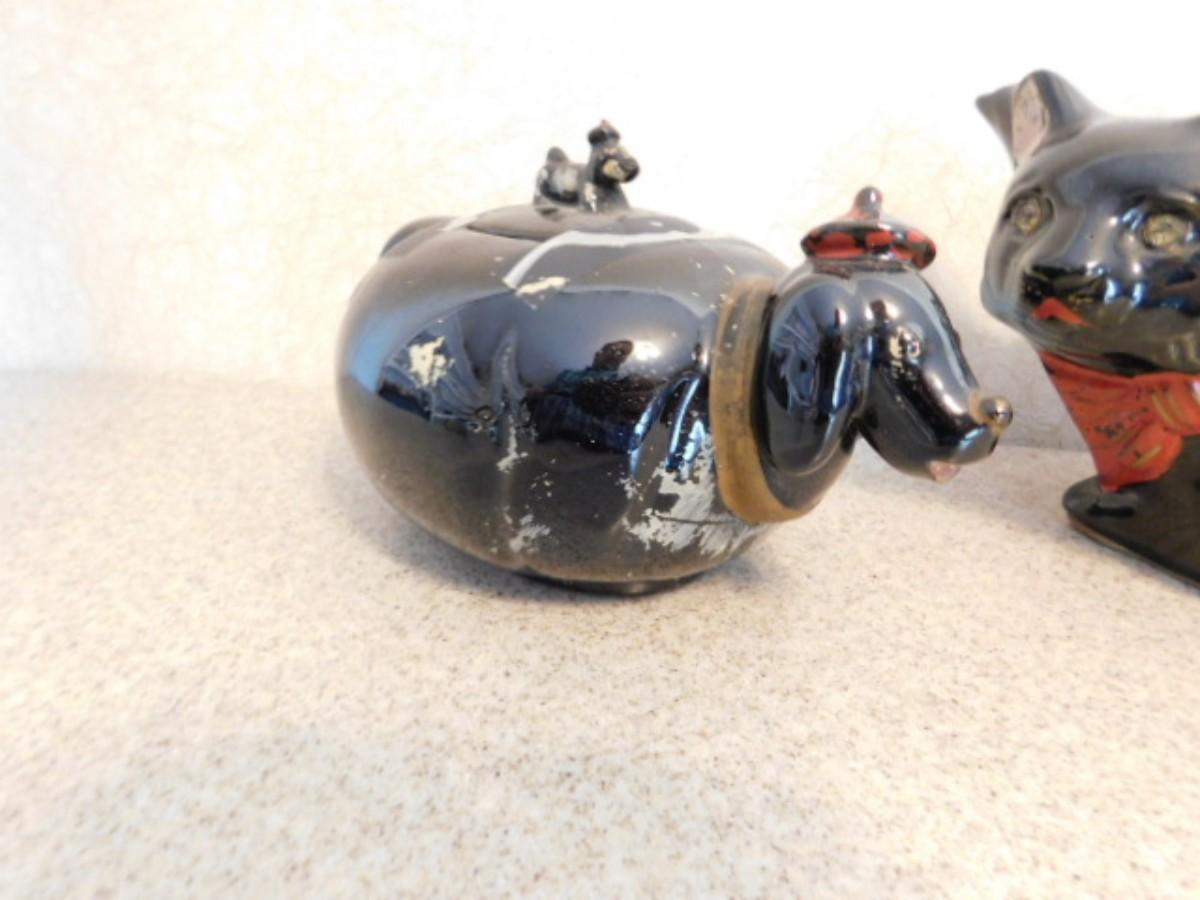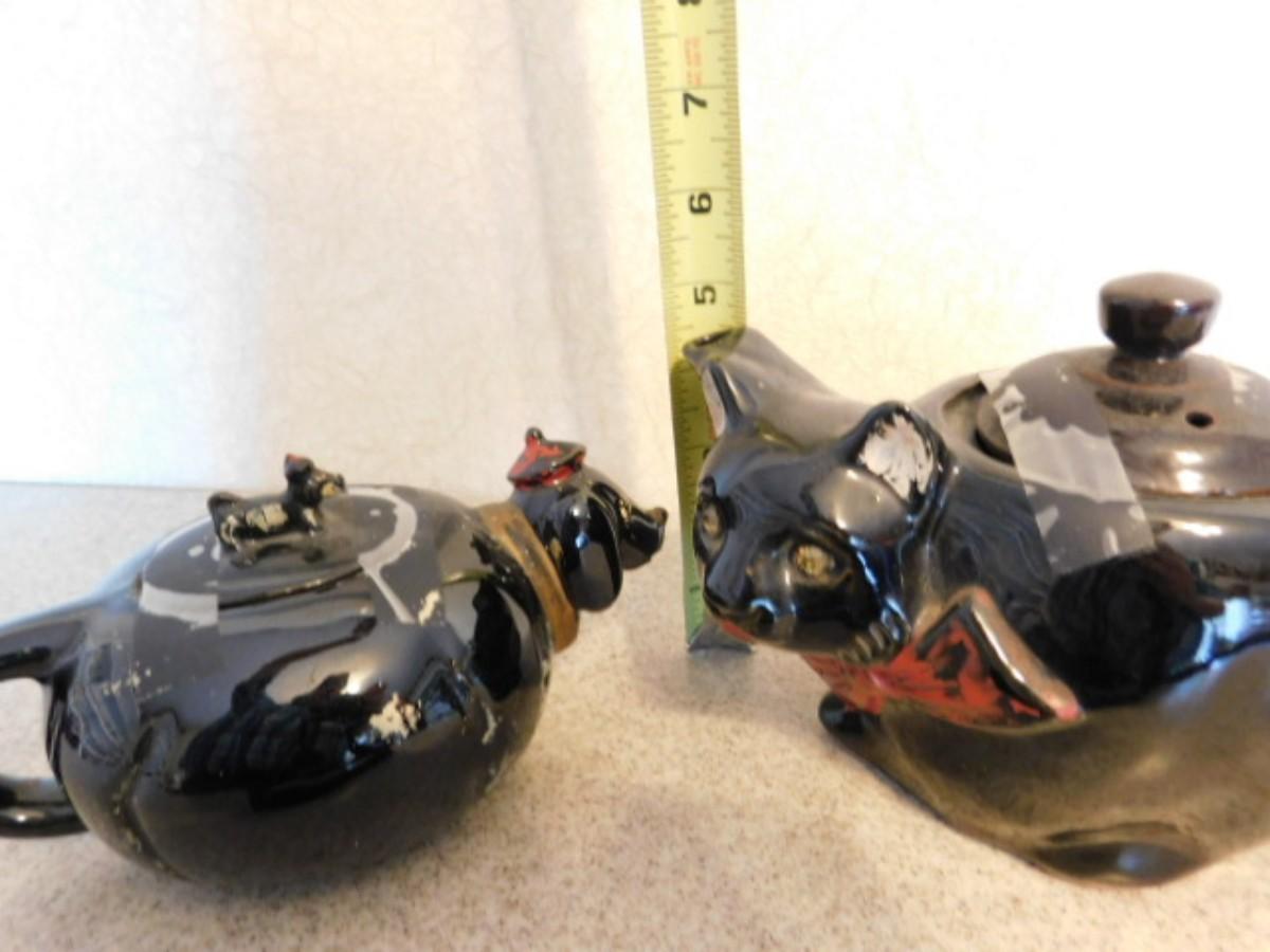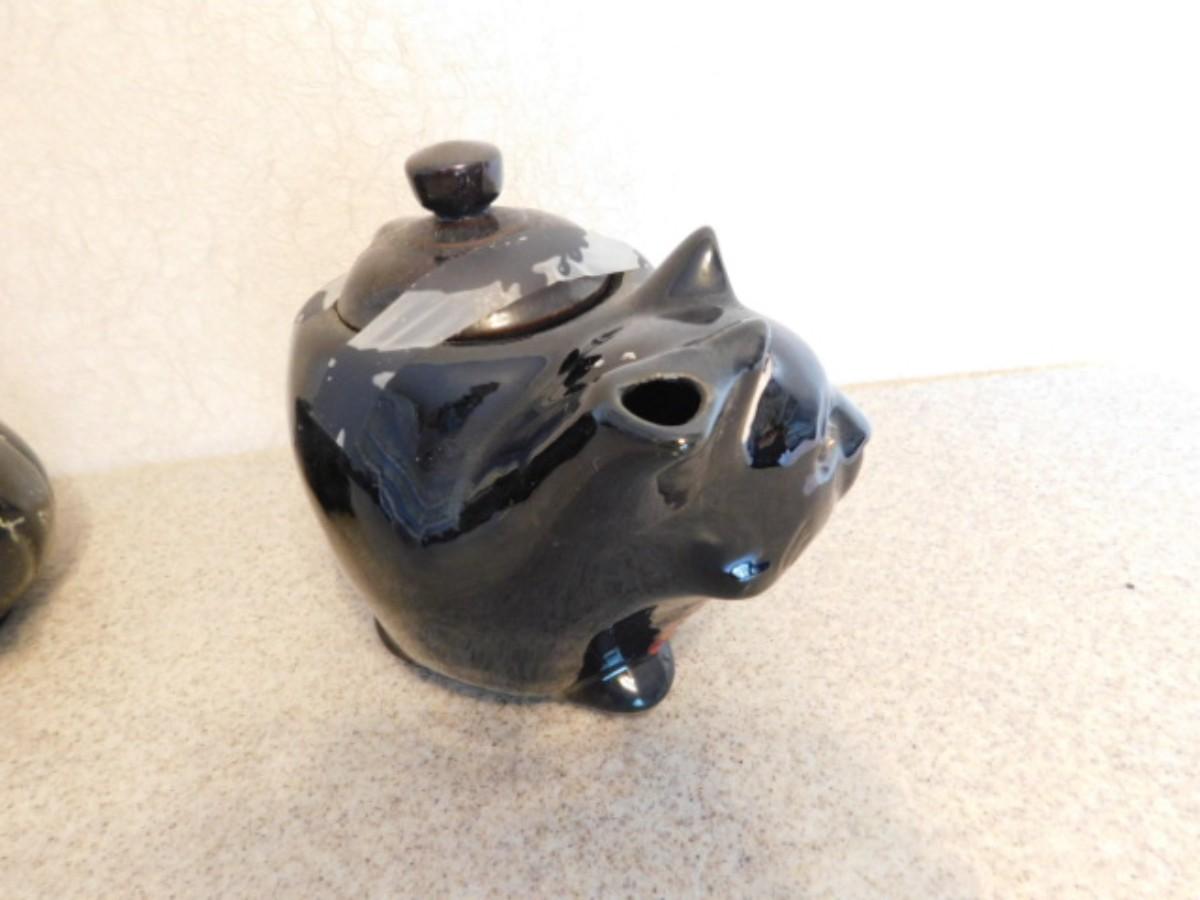 Rare Vintage Hand Painted Japanese Pottery Figural Cat Teapot and Puppy Creamer