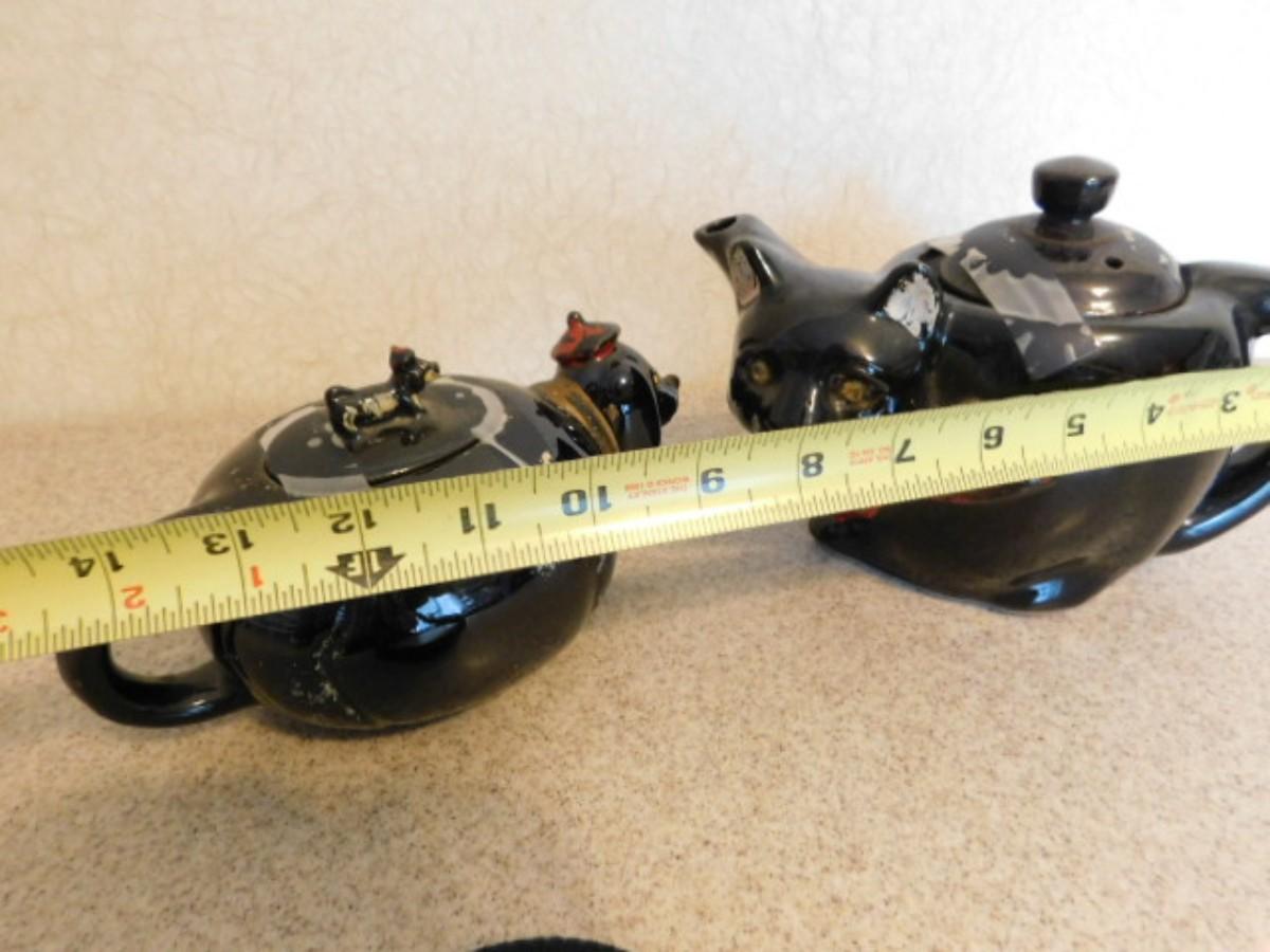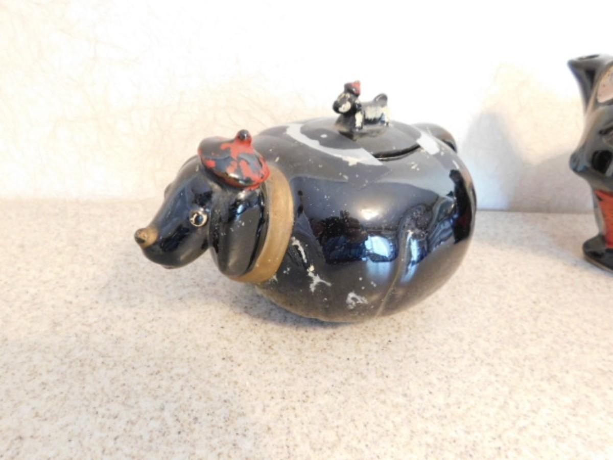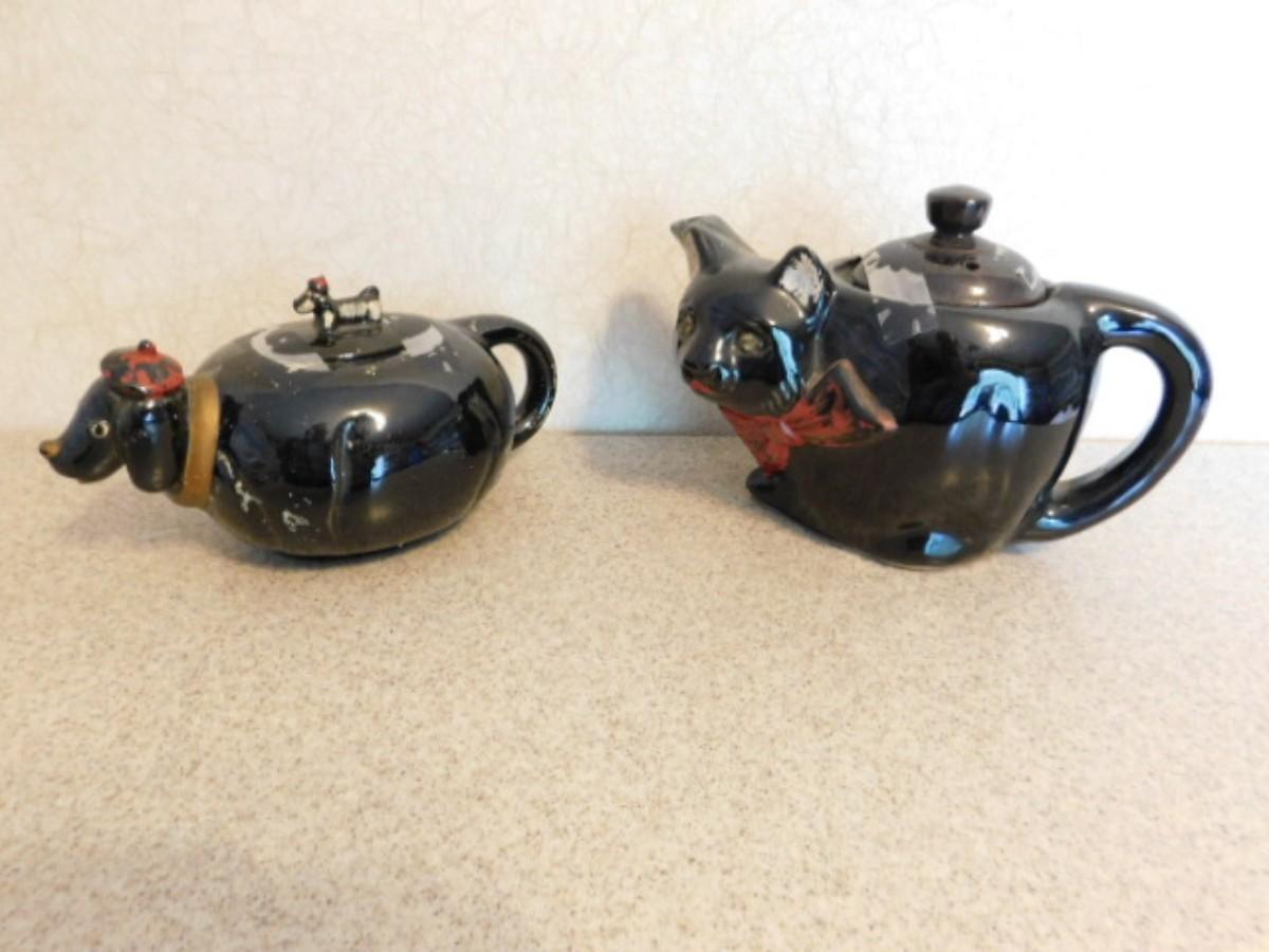 Rare Vintage Hand Painted Japanese Pottery Figural Cat Teapot and Puppy Creamer