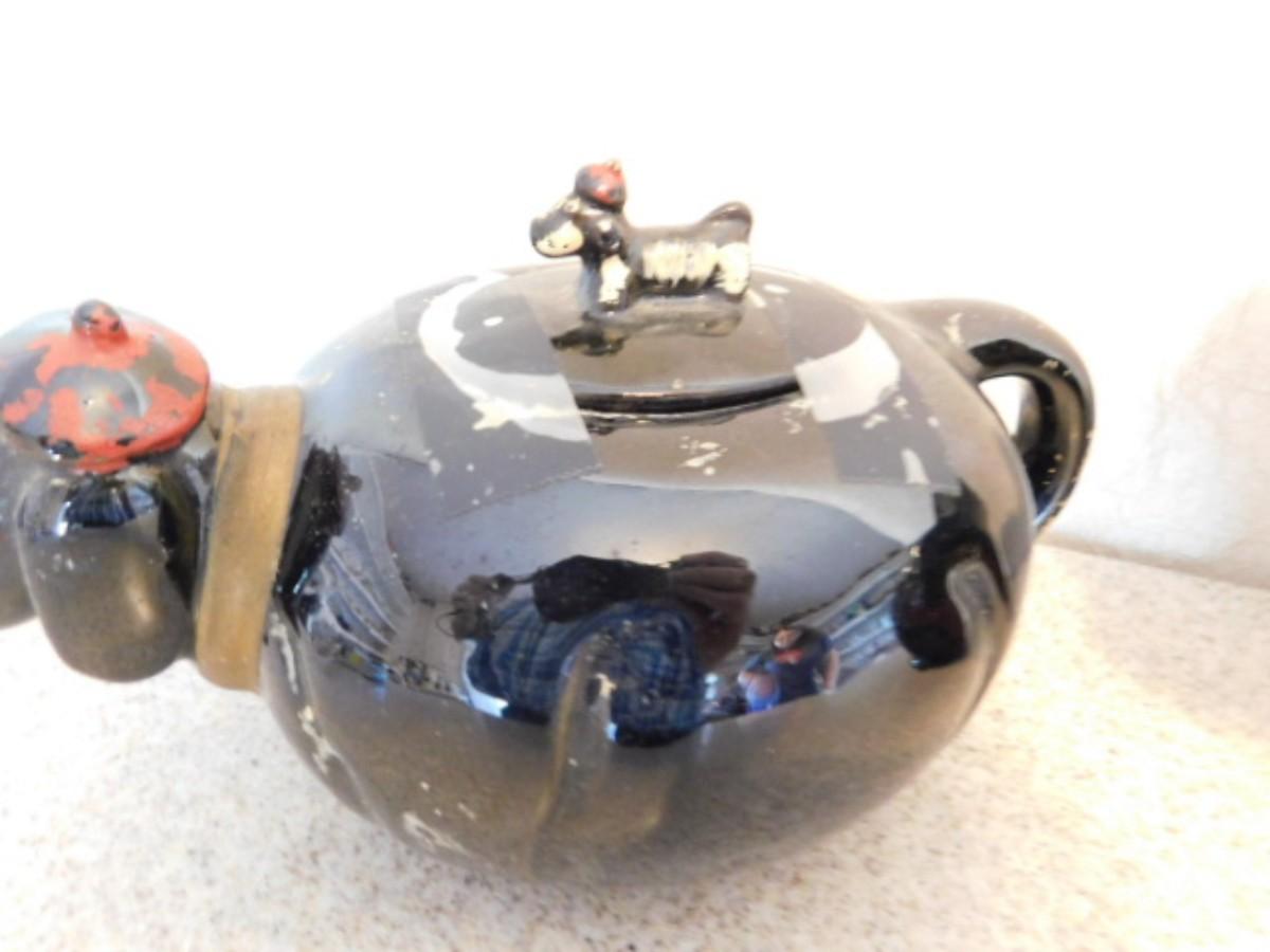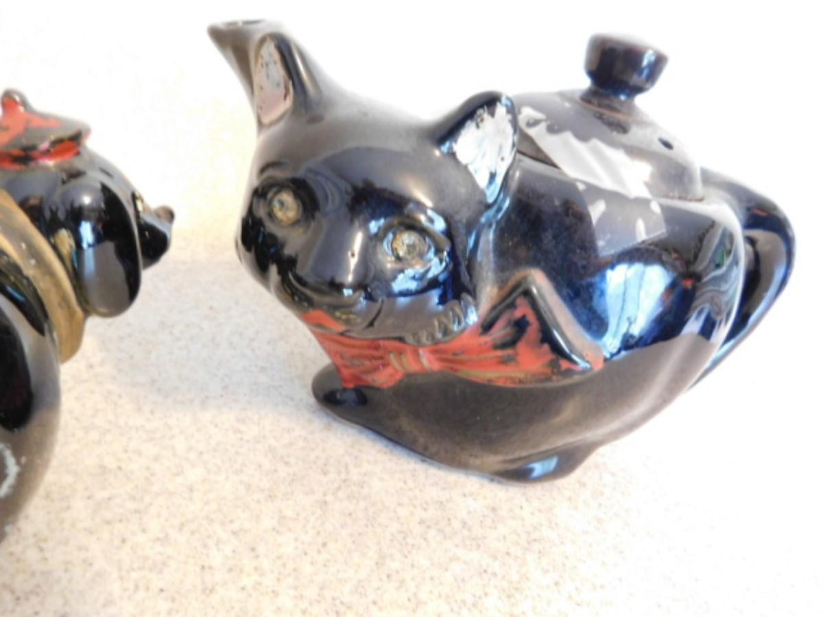 Rare Vintage Japanese Pottery Figural Cat Teapot and Puppy Creamer
