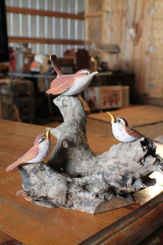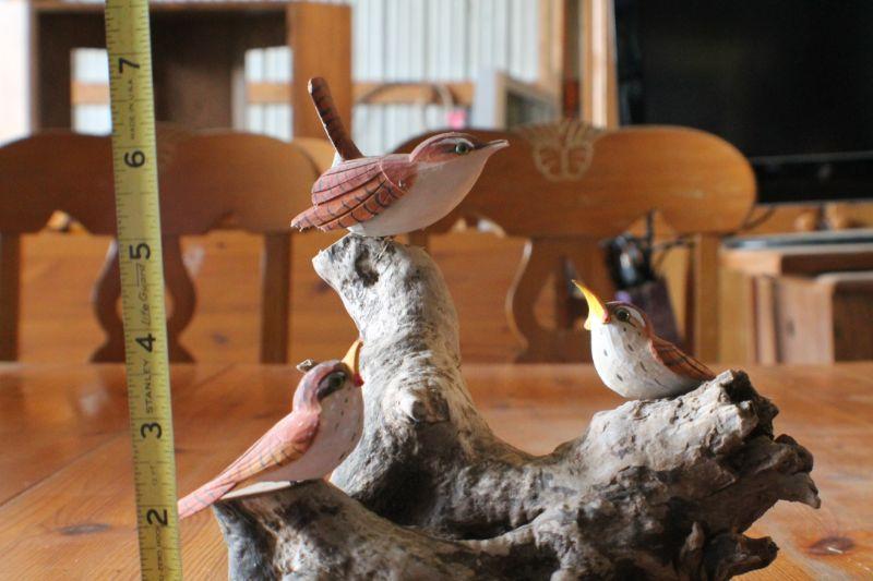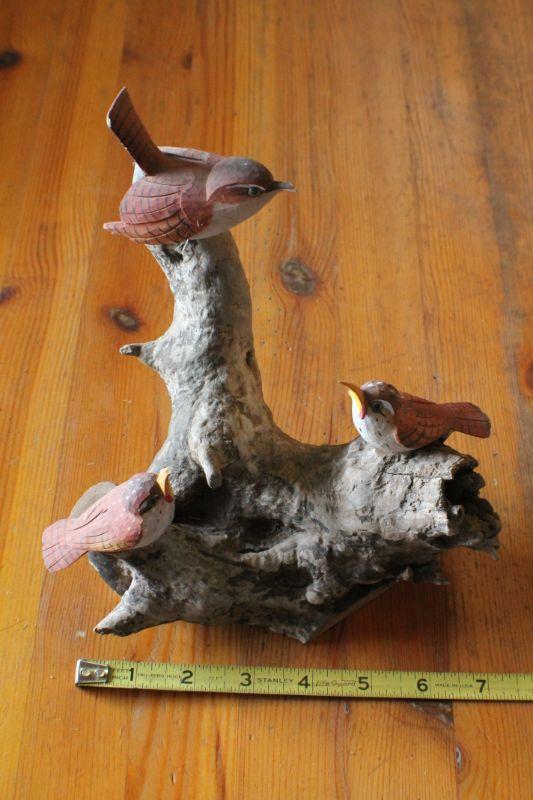 Lot #76: RARE Vintage HANDCARVED 3-Bird Wood Sculpture by Edsel Martin (damage to bird shown in pics)