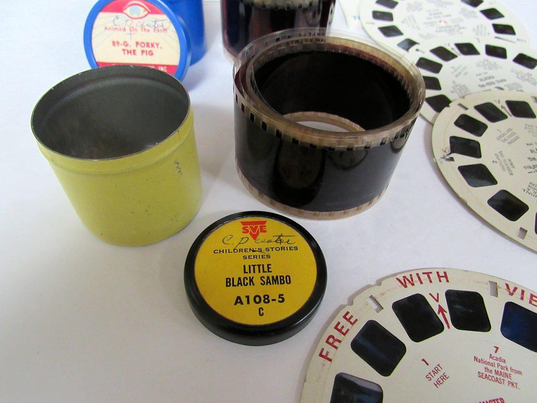 RARE Vintage Little Black Sambo Comic Film in Tube, A108-5, and Animals on the Farm Porky The Pig Film and Viewmaster Reels