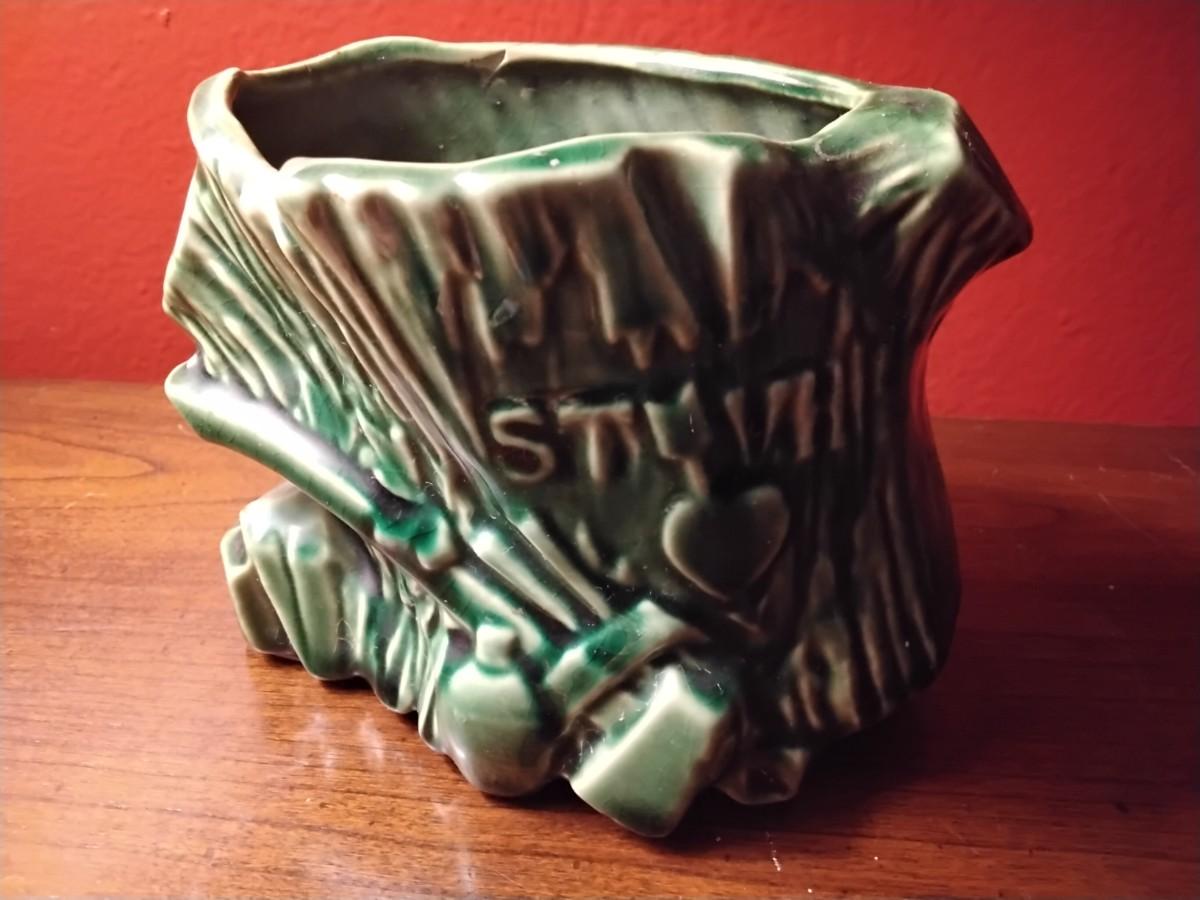 RARE Vintage McCoy Tree Stump Planter in Love Carve Initials in Tree