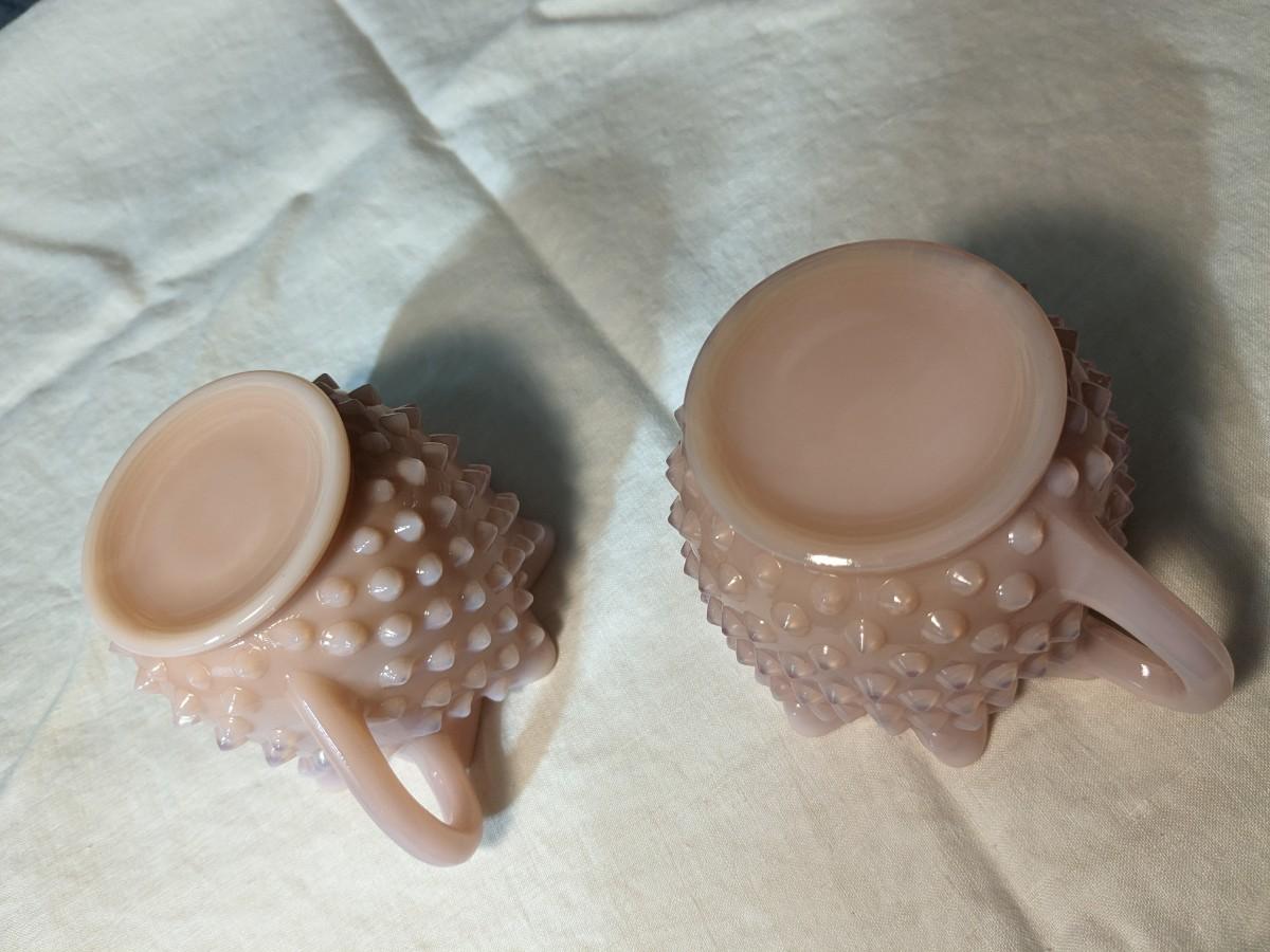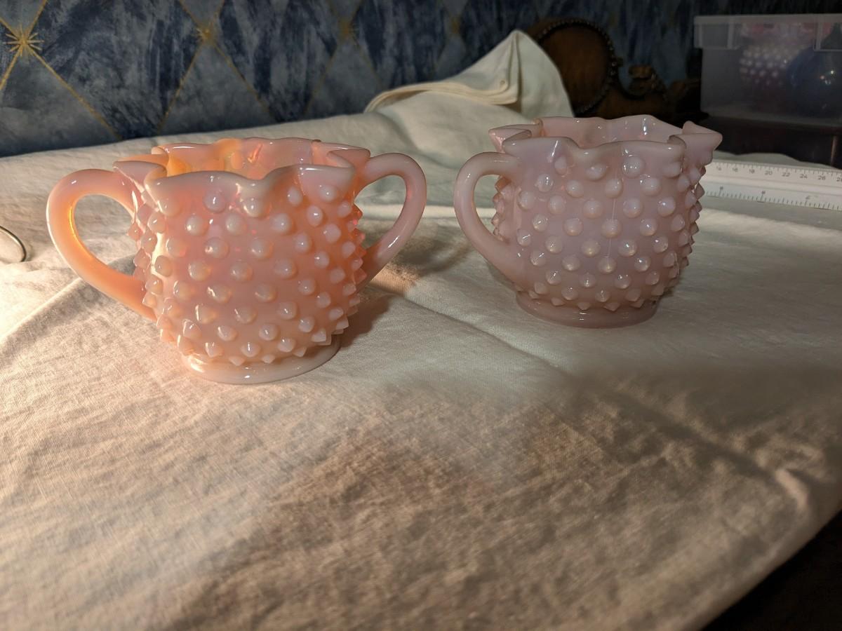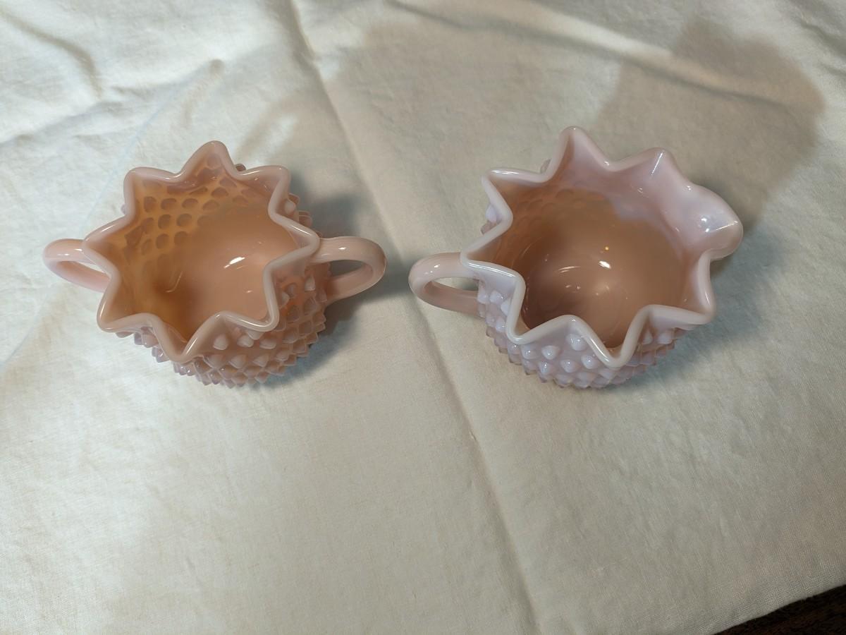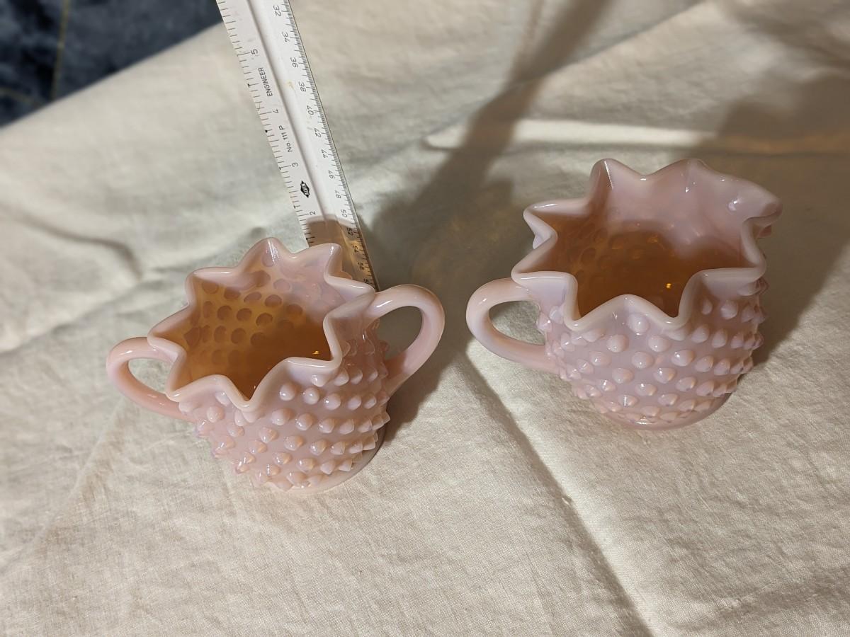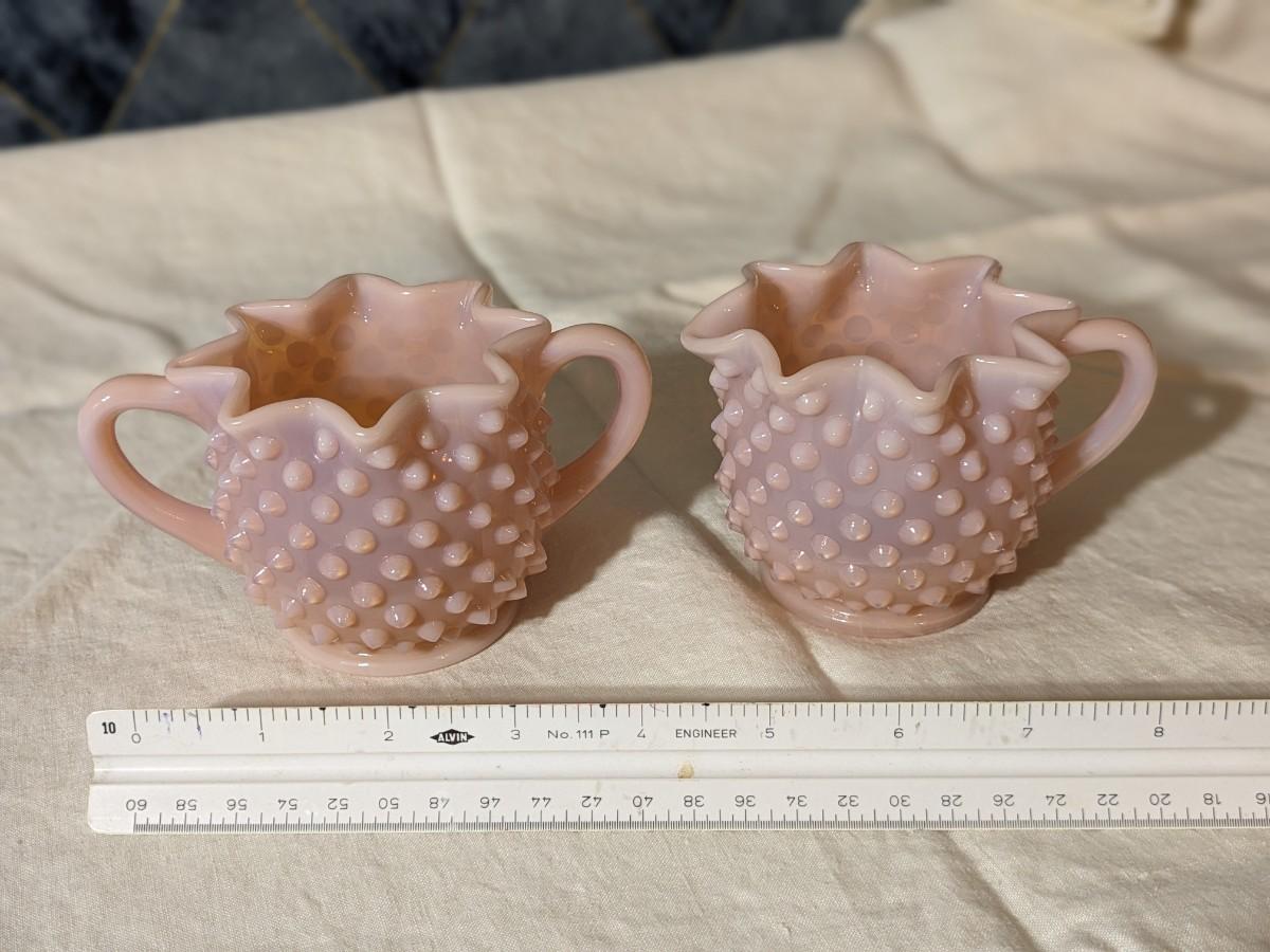 Rare Vintage Pink Hobnail Fenton Cream and Sugar