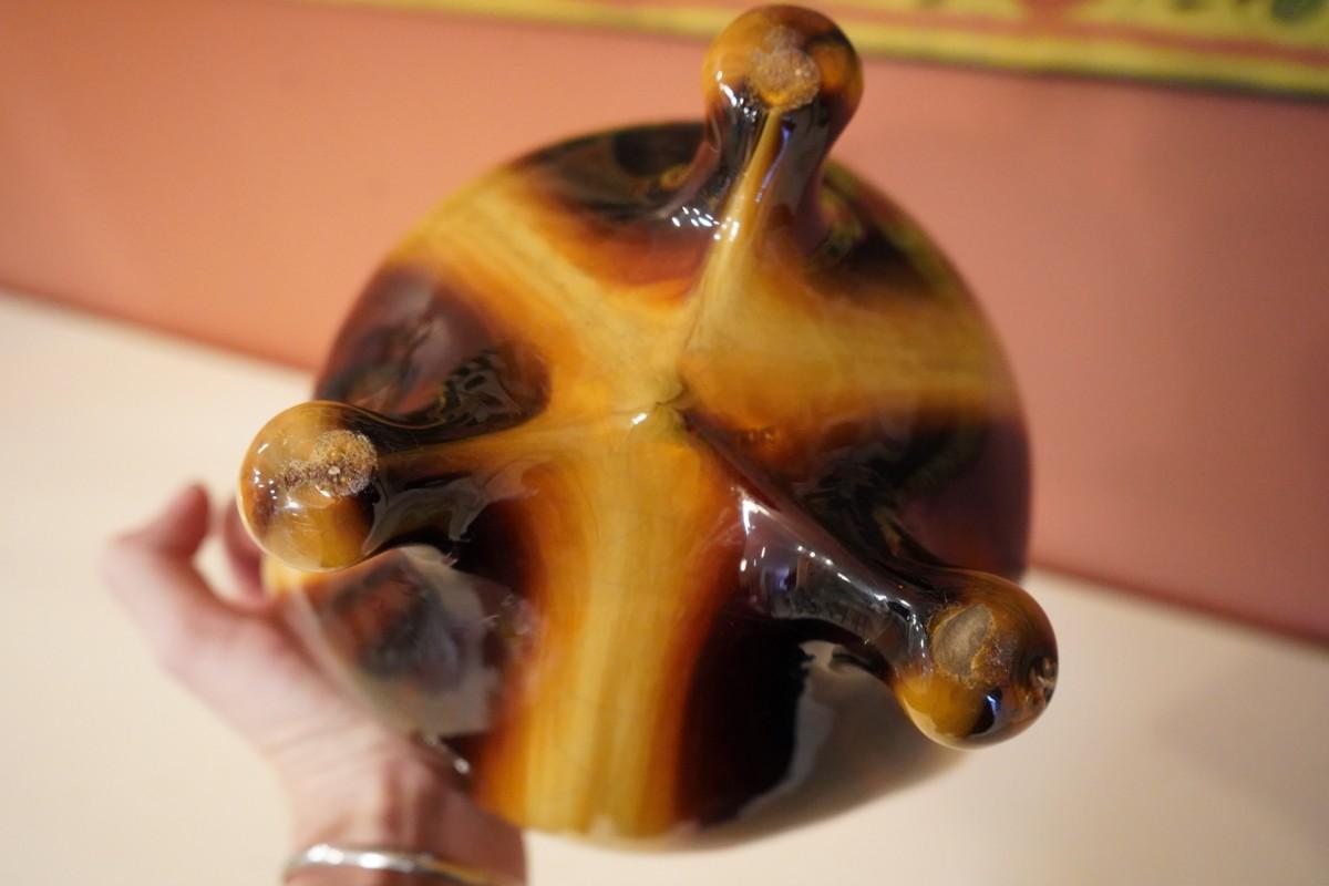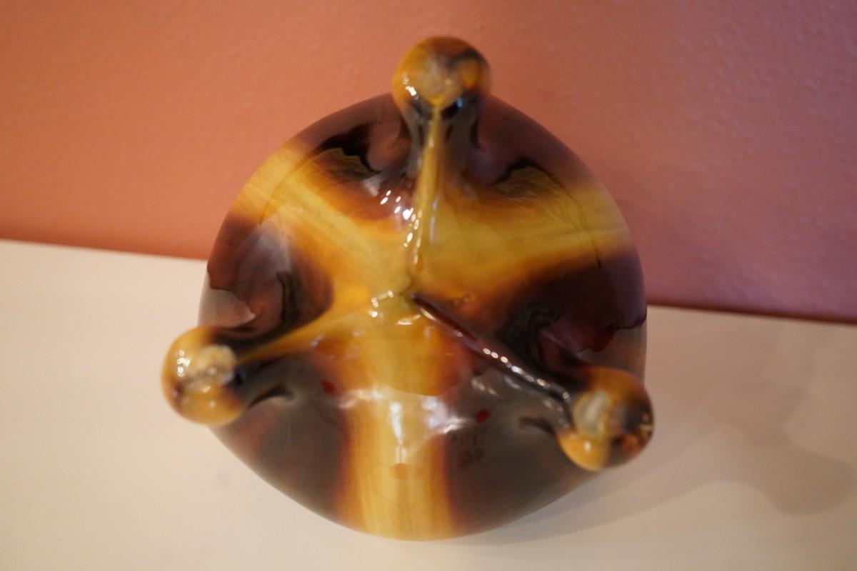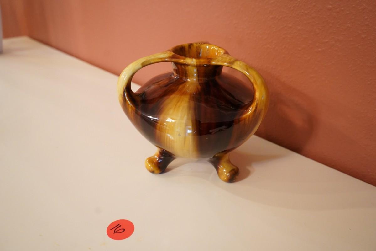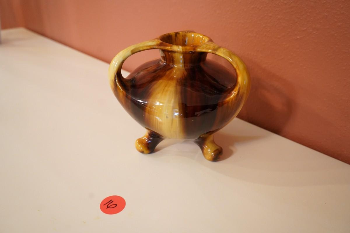 Decorative art pottery - 3 legged/handled Vase - 8" diameter x 7.5 H.