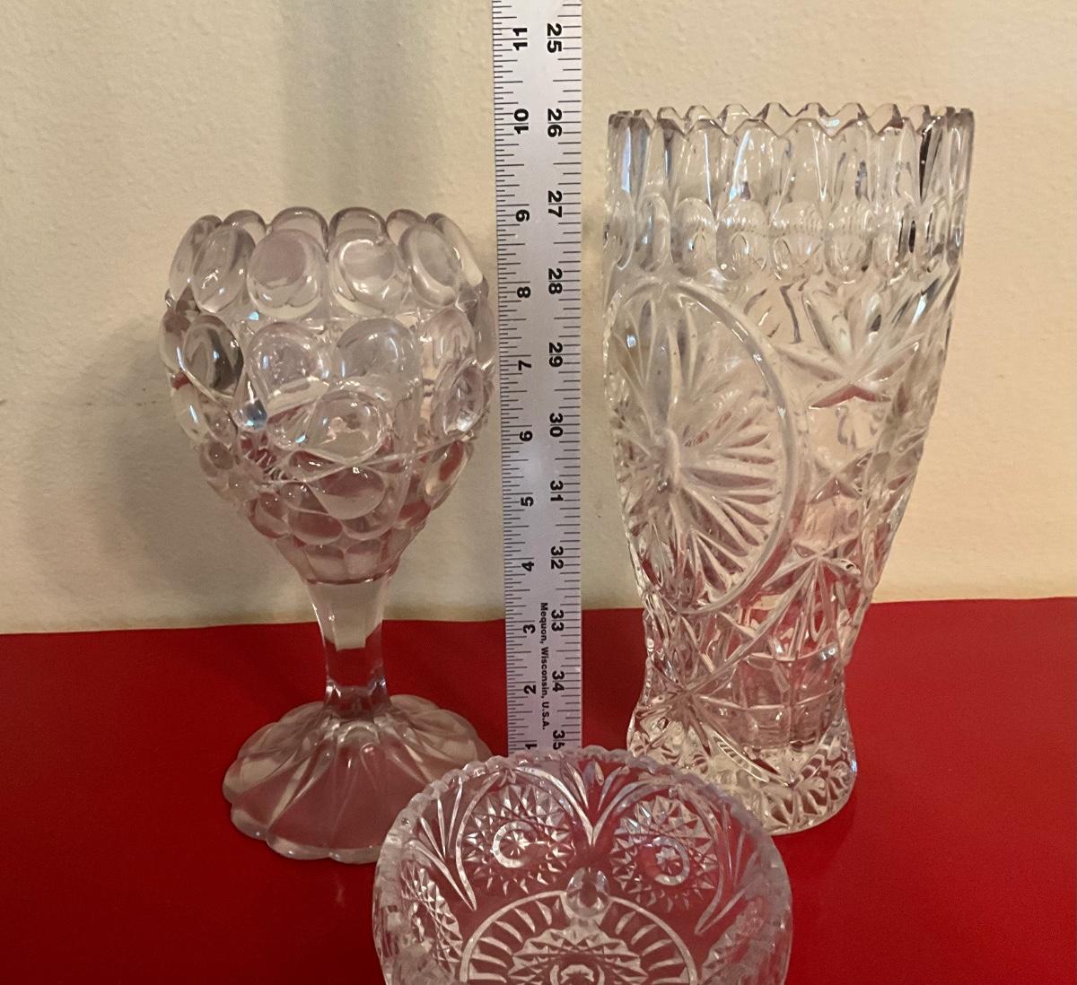 Rare Vintage Zajecar MCM Crystal Vase & Vintage Lilac EAPG Pedestal Vase,