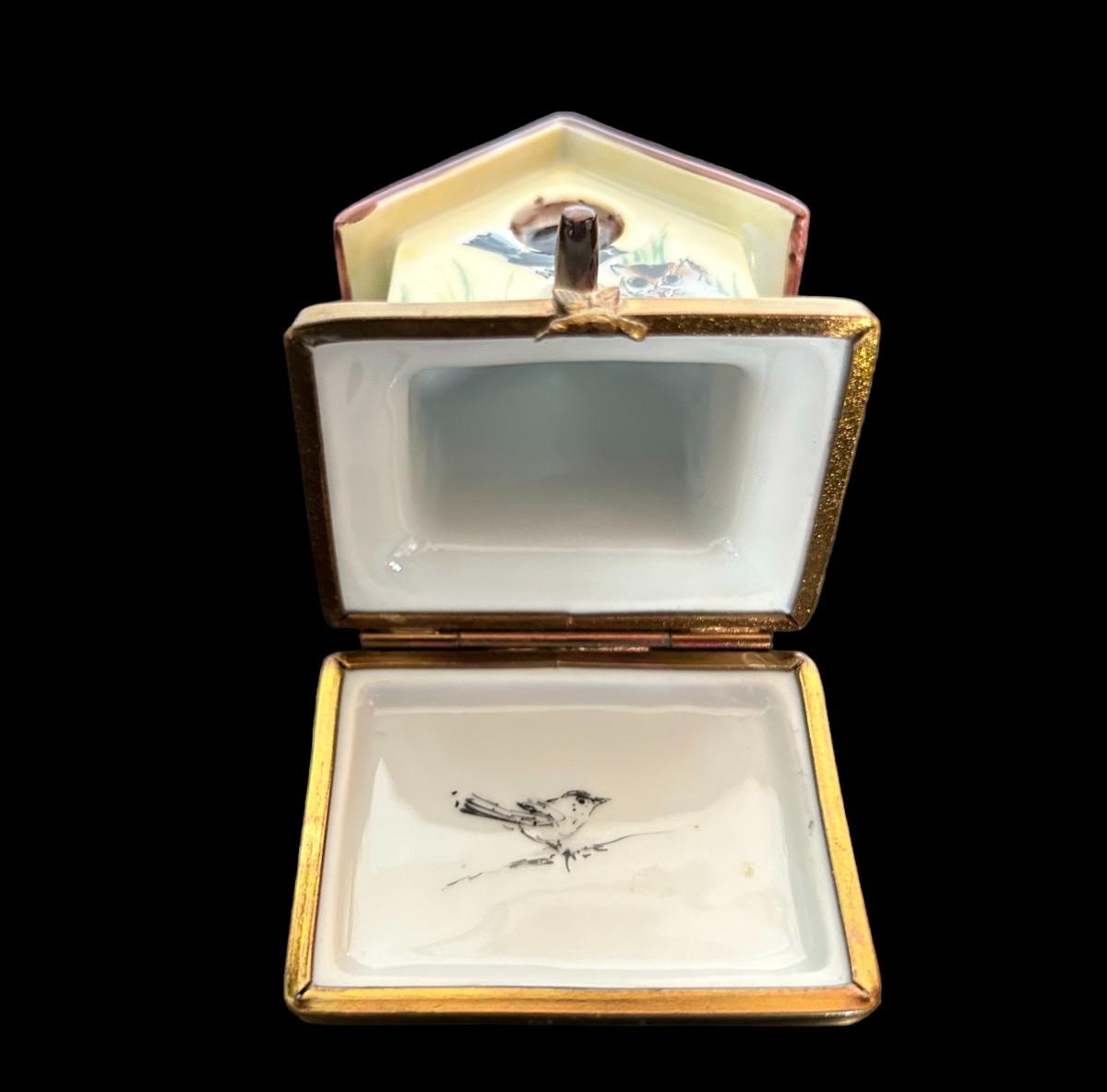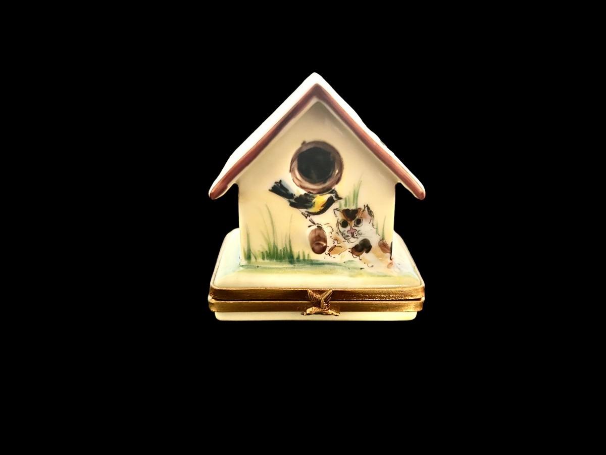 Rare Vintage/Retired Design Rochard Limoges Trinket Box - Birdhouse with Cat