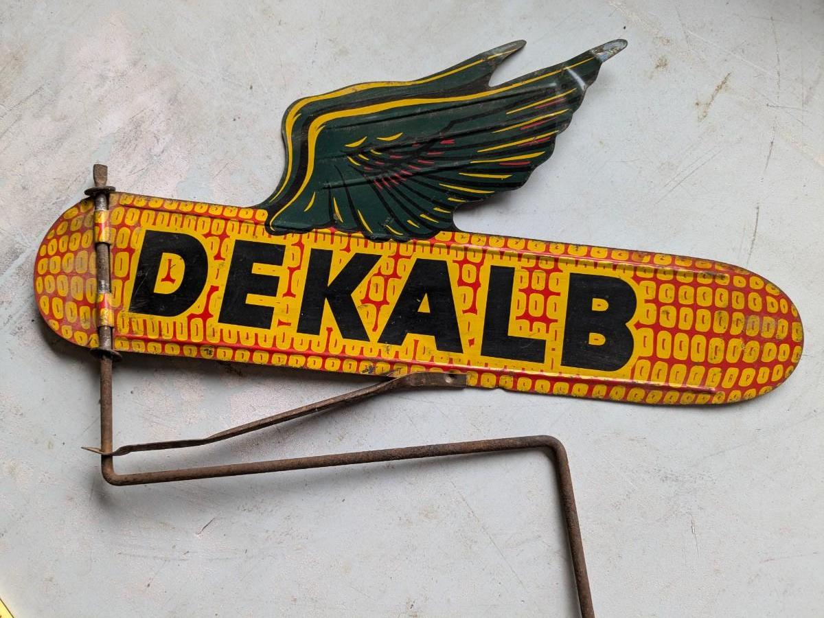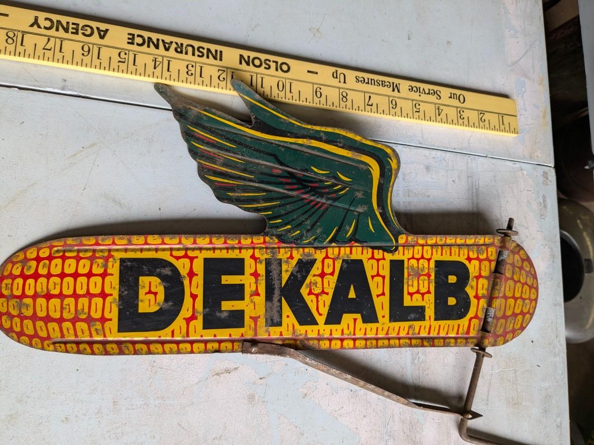 Rare Vtg Metal Dekalb Flying Ear Spinner Wind Vane Sign DOUBLE SIDED FARM SEED FEED