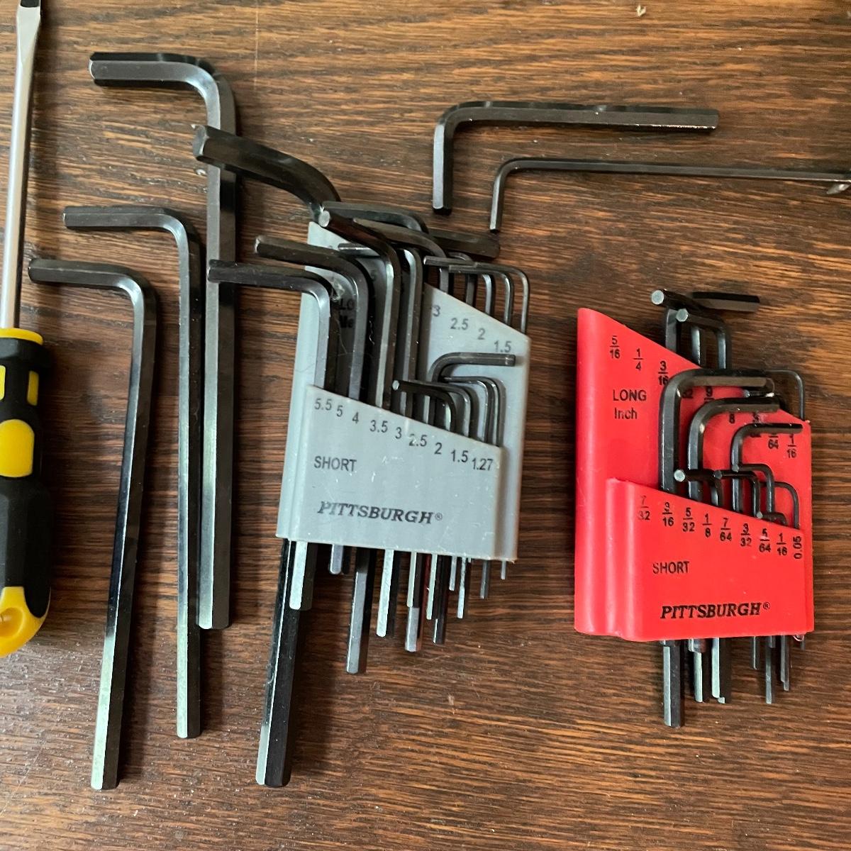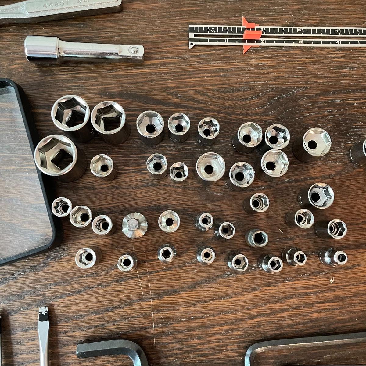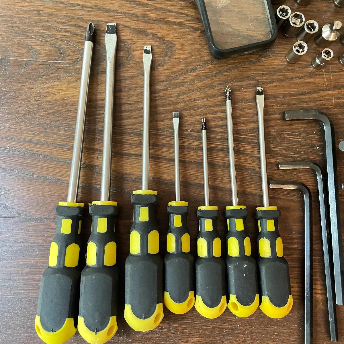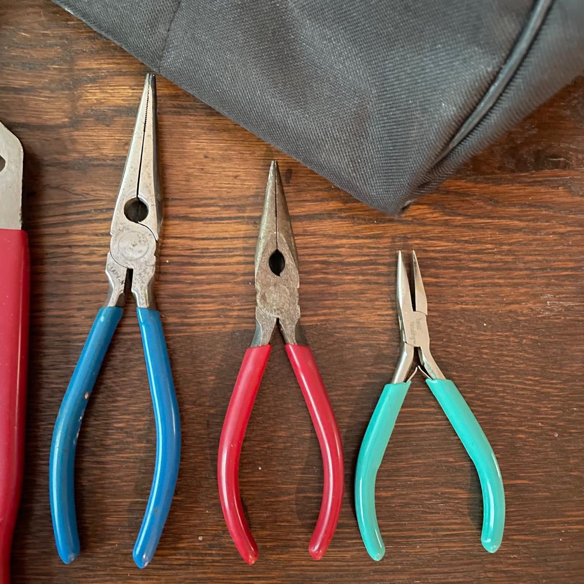 Voyager multi-pocket case with two ratchets and over thirty sockets. A seven piece screwdriver set, plenty of Allen wrenches, hammer, pliers, magnifying glass and two small magnets. Voyager bag measures approximately 14” x 10” x 10”. Local pick up only.