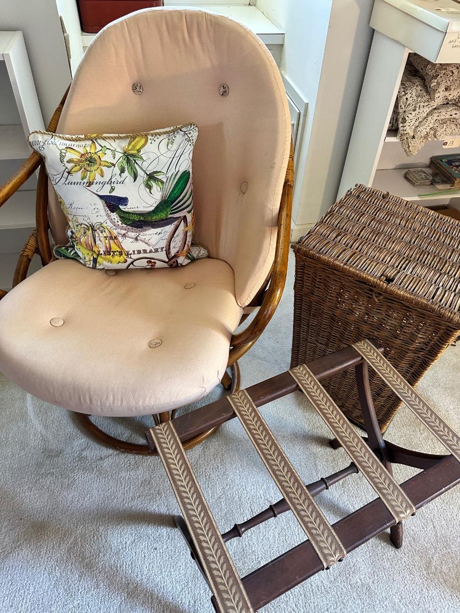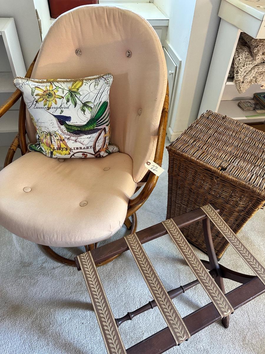 Rattan Chair and Luggage Rack Lot, As Pictured
