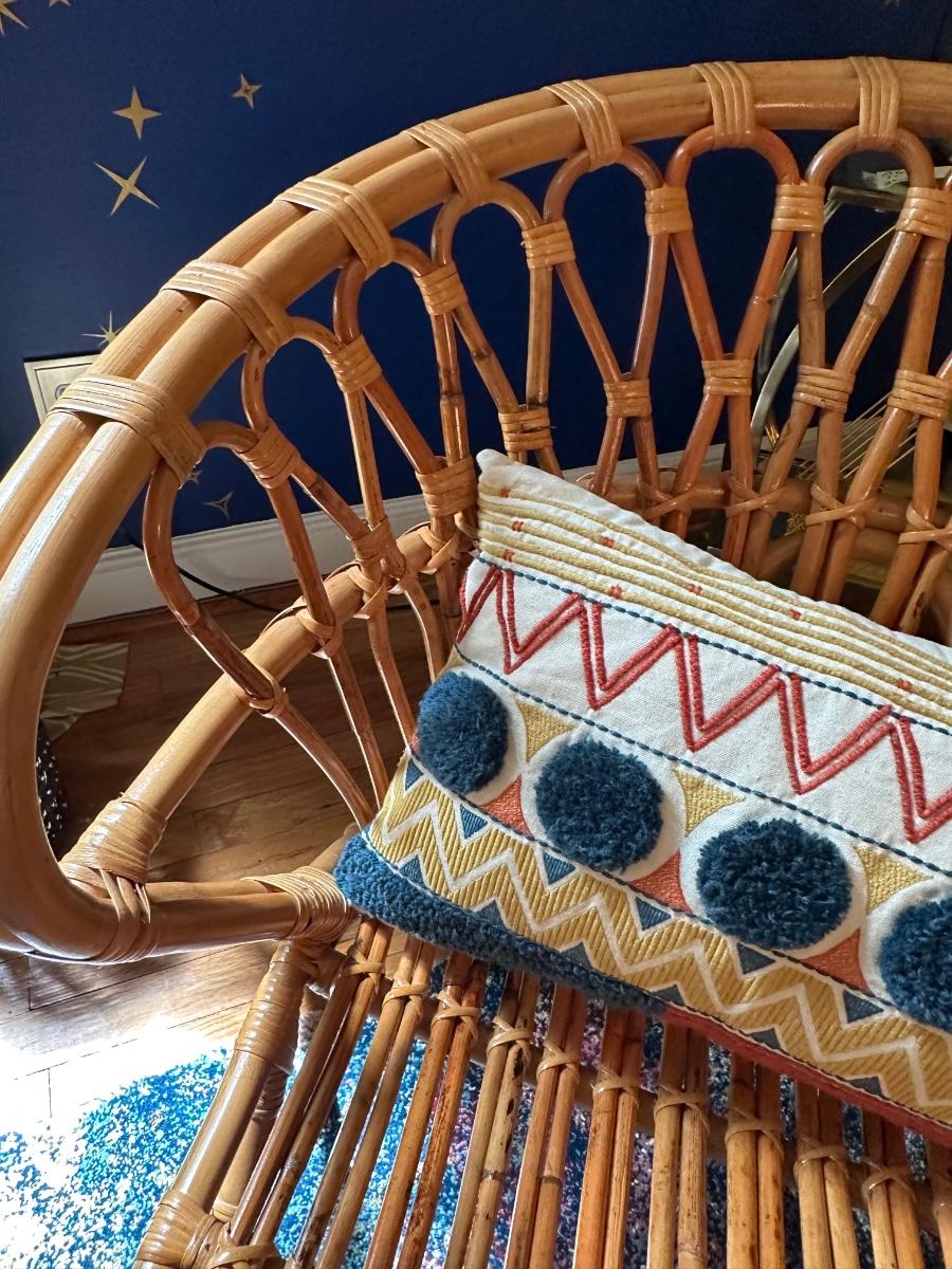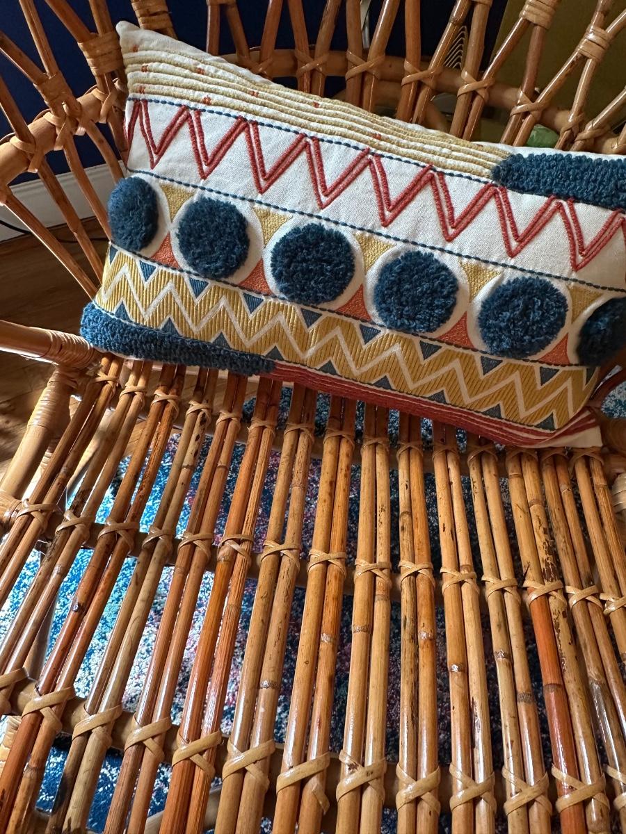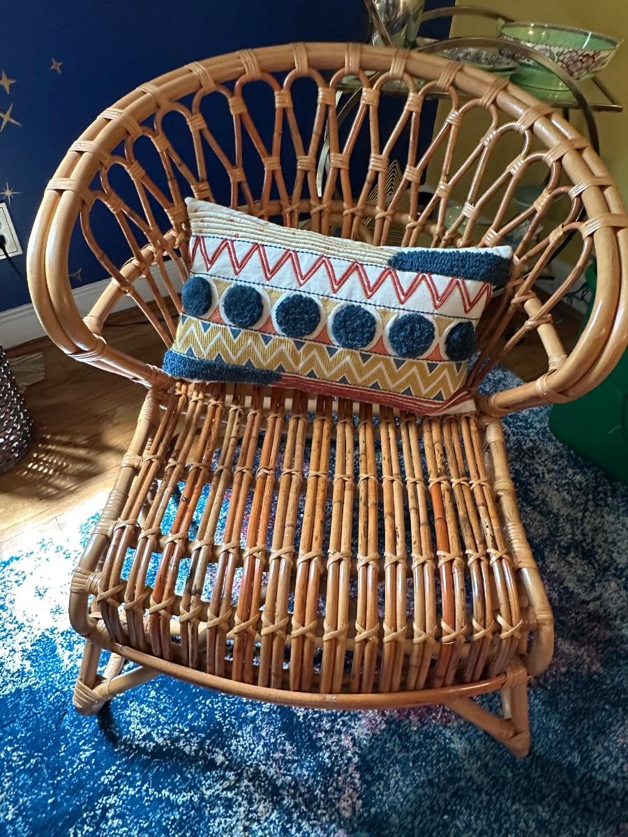 RATTAN CHAIR AND PILLOW AS PICTURED