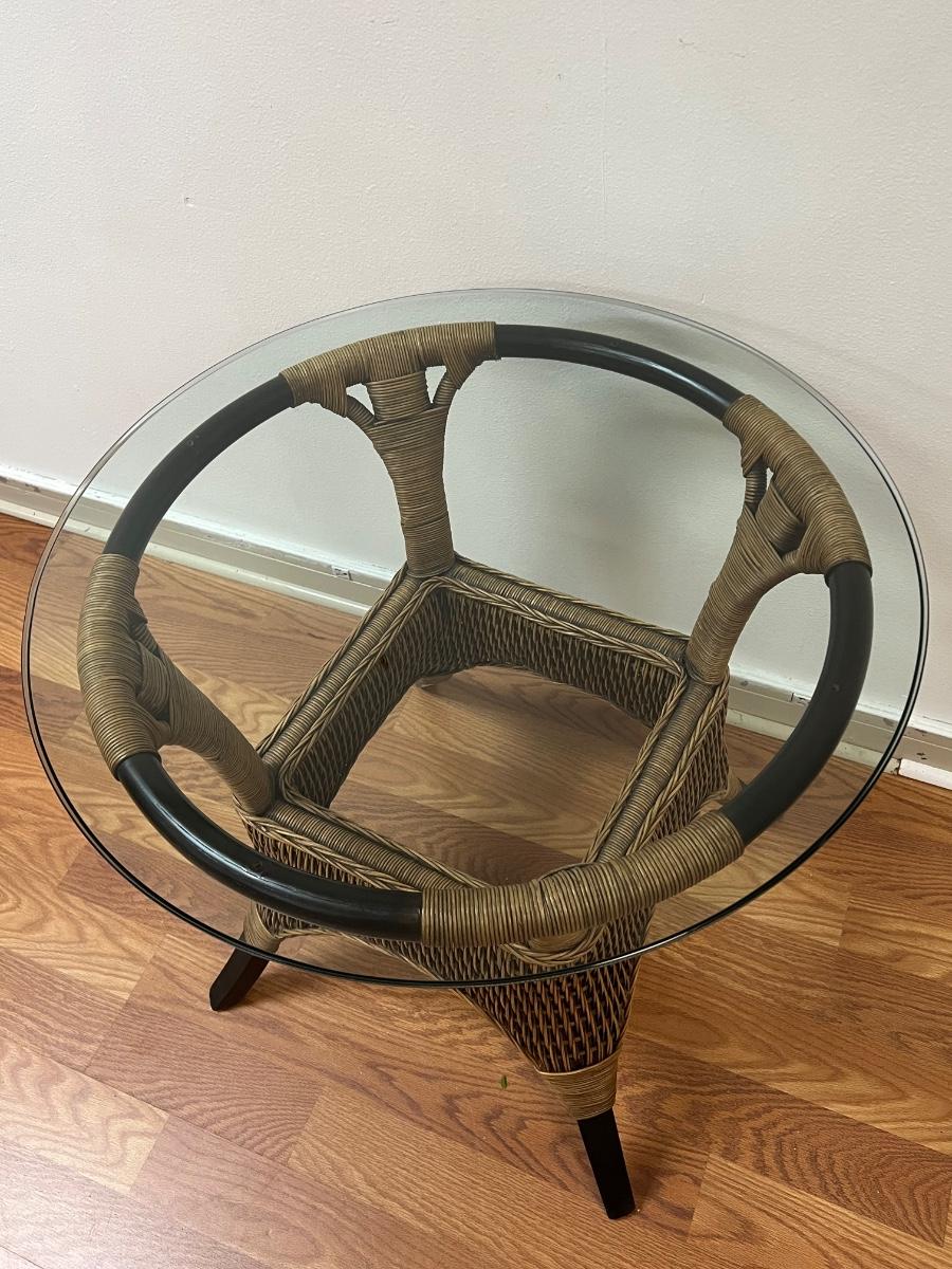 Rattan Glass Top Table