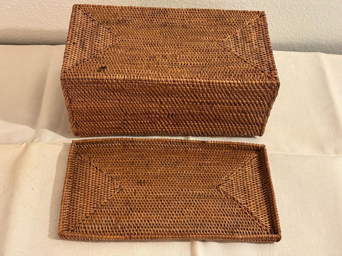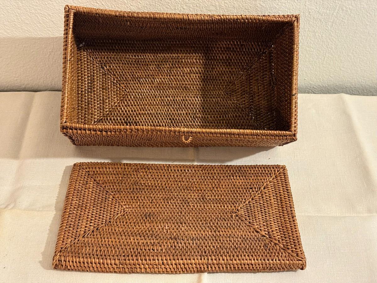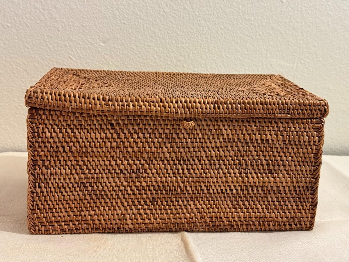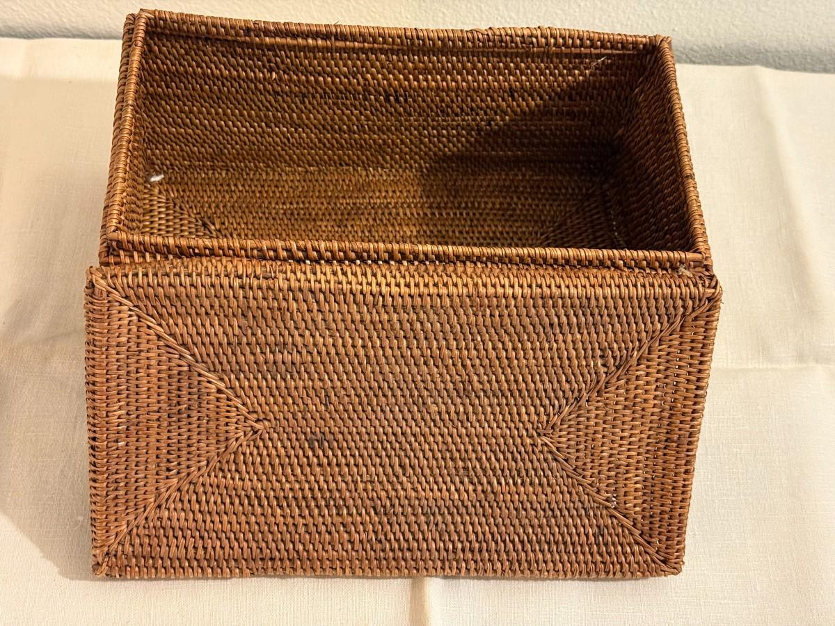 Pre-owned. Rattan Lidded Storage Basket. L 11in | H 5.1/4in | W 5.7/8in