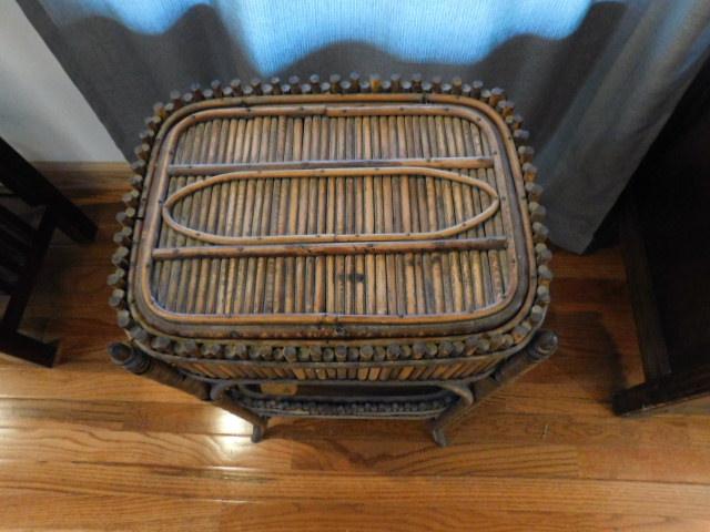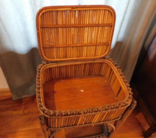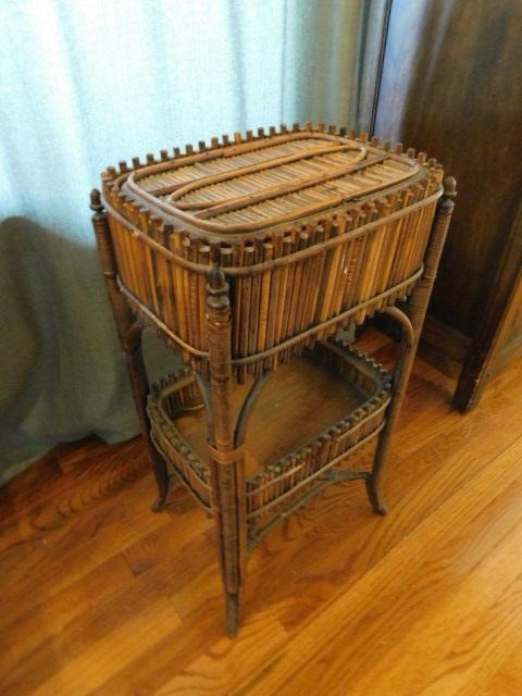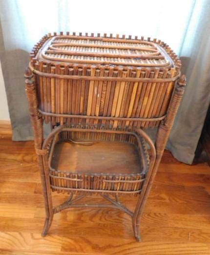 Rattan Bamboo Reed Sewing Basket and Stand 25" Tall