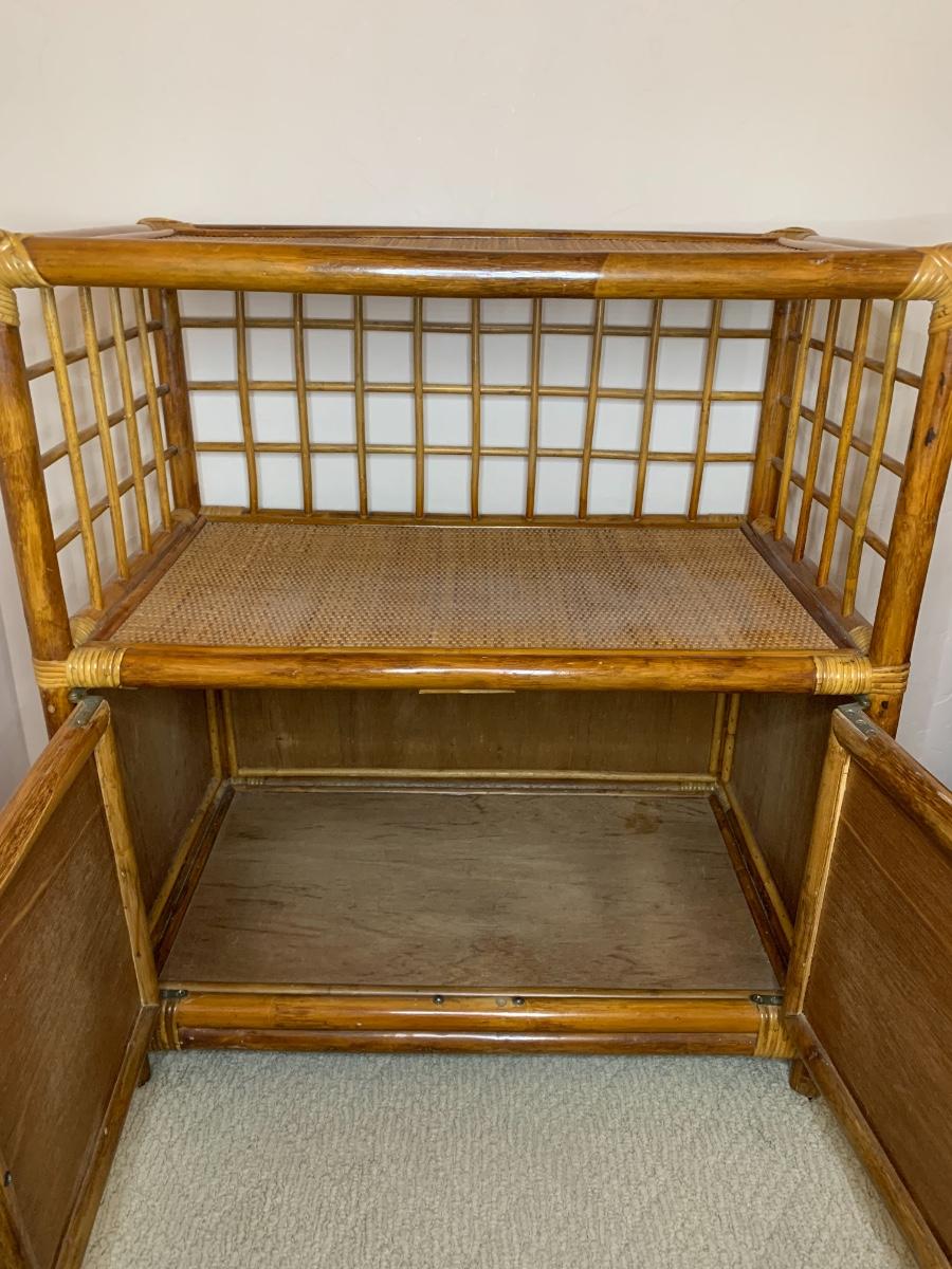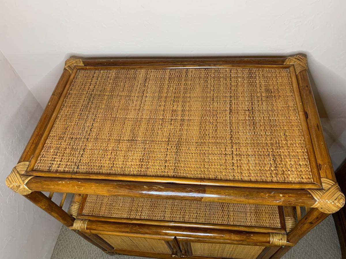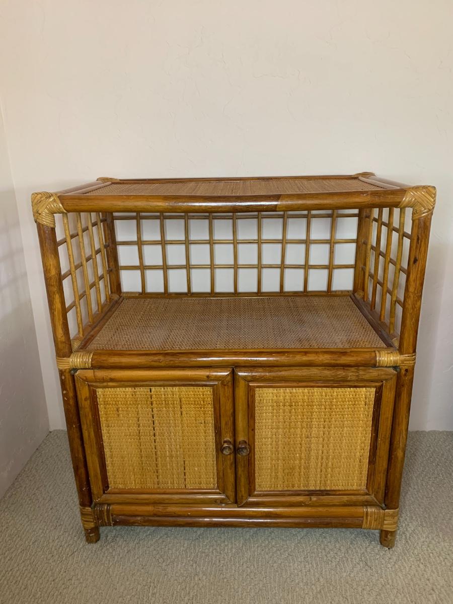 Rattan/Cane storage unit in fantastic condition, just a little dusty. Purchased in Hong Kong. (27” L x 16.5” D x 29” H)