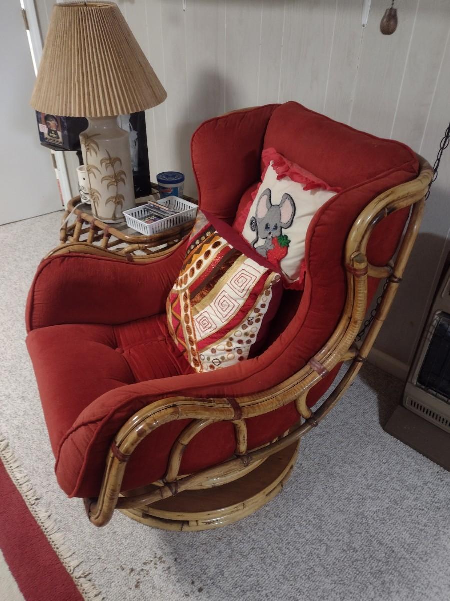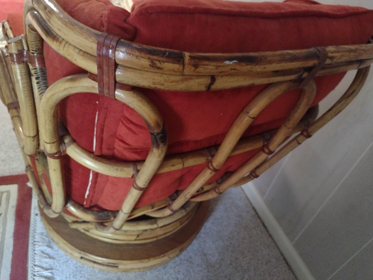 Rattan Swivel Chair matches the couch and chair lots. There is no ottoman