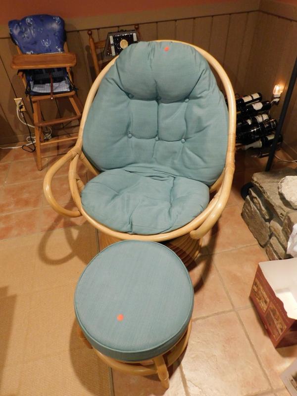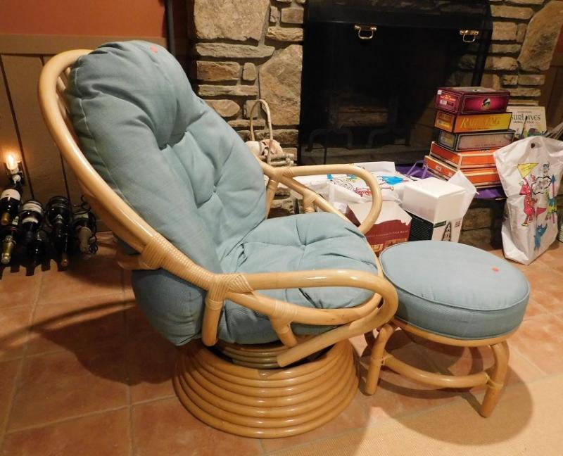 Rattan Swivel Chair with Matching Ottoman in good condition